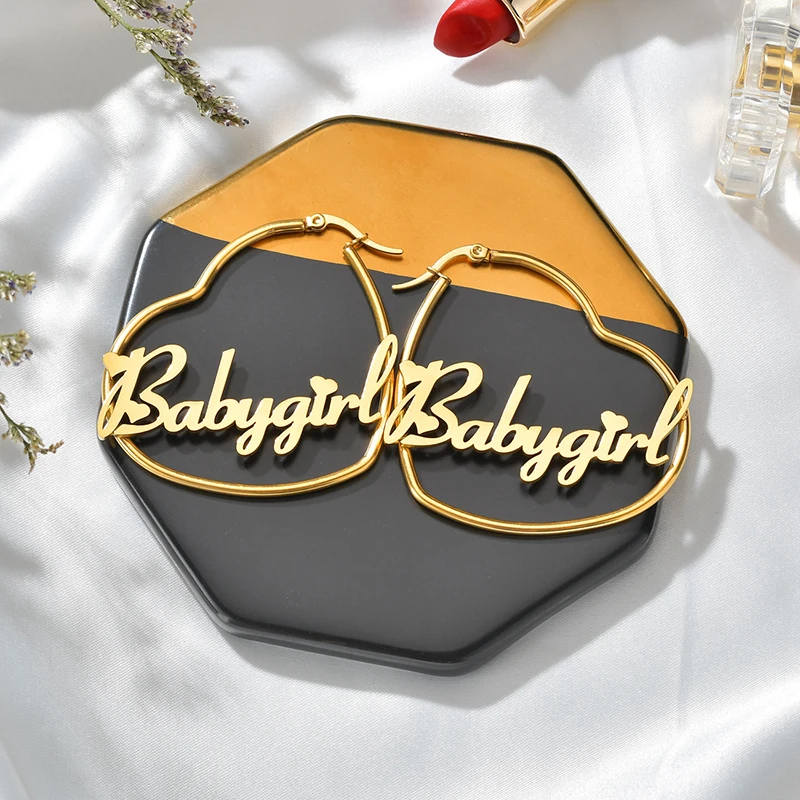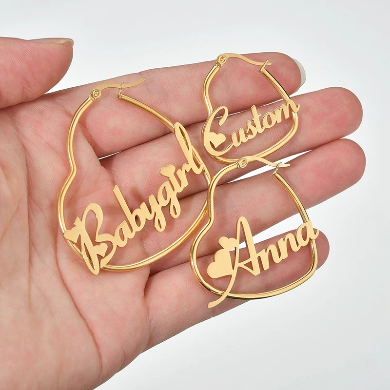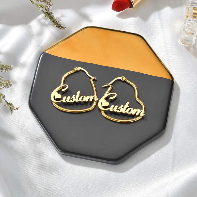 UZone, 1 пара, серьги-кольца из нержавеющей стали с именем в виде сердца, персонализированные серьги-кольца с надписью для женщин и девочек, подарок на день рождения