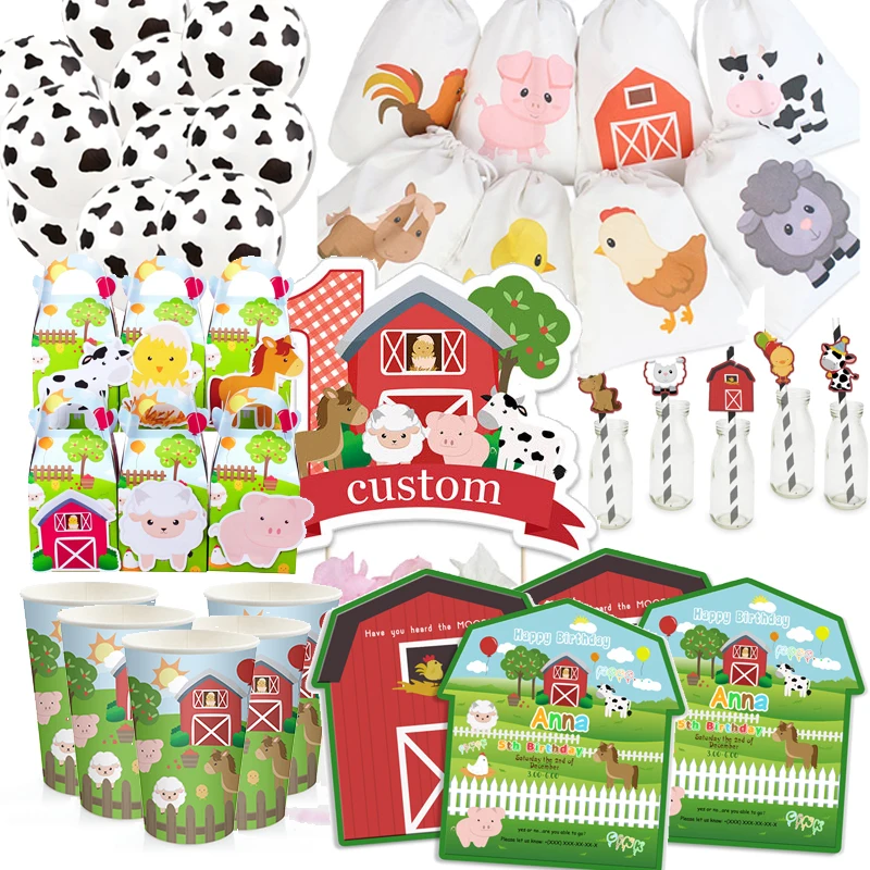 Топпер для торта в виде фермы, животных, коробочки для сувениров на день рождения, бумажные чашки, приглашения, шары, наклейка на этикетку Детской бутылки