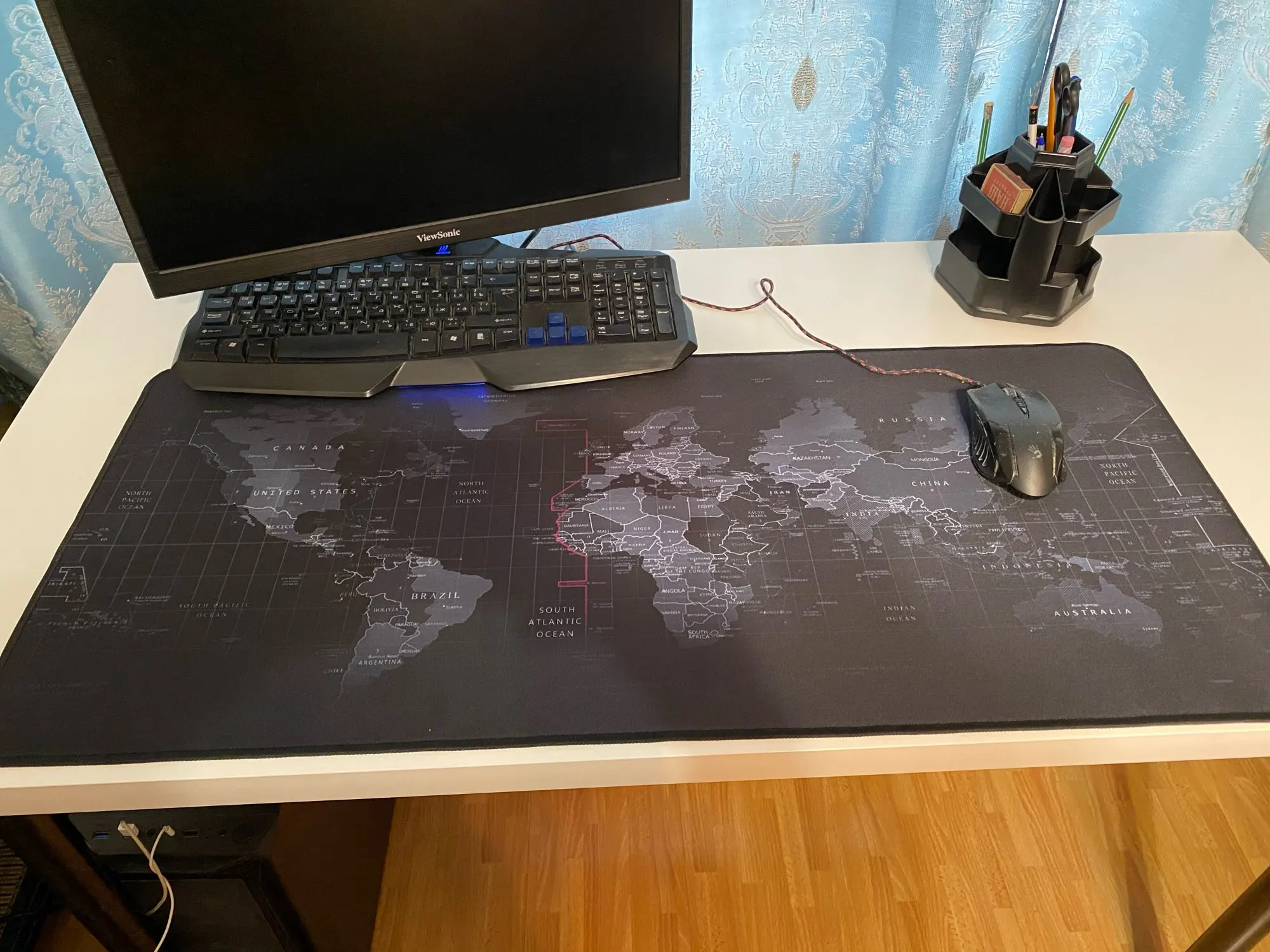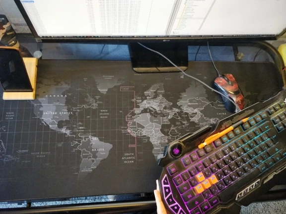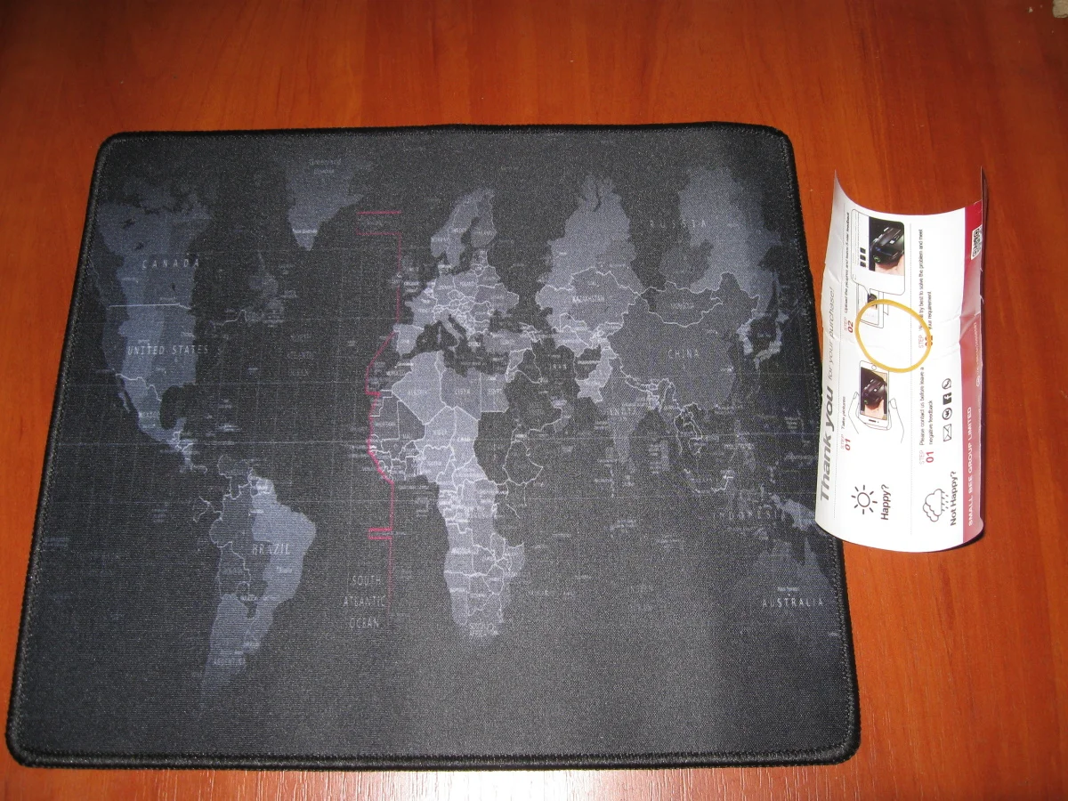 Очень быстрая доставка компанией IML до квартиры. Принт на твёрдую 4. Если кто сомневается - лучше брать без принта. Крым на карте не российский, да и вообще часть стран как-то смазана темными пятнами. По качеству вроде нормальный. На столе не скользит - нижняя часть прорезинена.