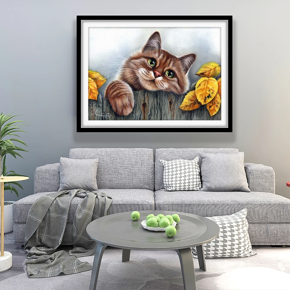 Алмазная живопись 5D с изображением кота, квадратнаякруглая мозаика...