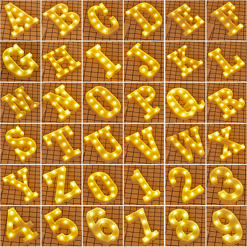 СВЕТОДИОДНЫЕ буквы сделай сам, 26 дюймов, английские цифры 0-9, креативный светящийся светодиодный ночник с буквами, декор для рождества, свадьбы, дня рождения, вечеринки