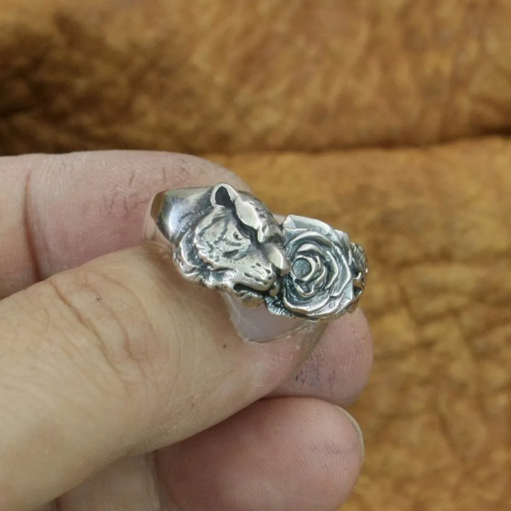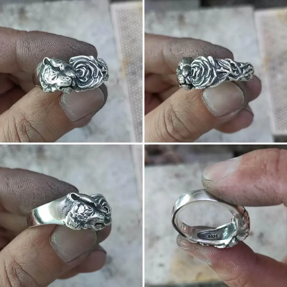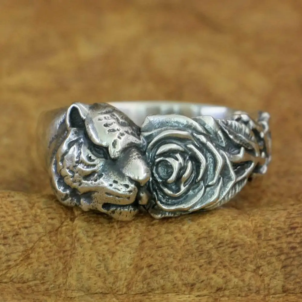 Кольцо из серебра 925 пробы с тигровой розой, модное байкерское кольцо в стиле панк, TA211, американский размер 7 15