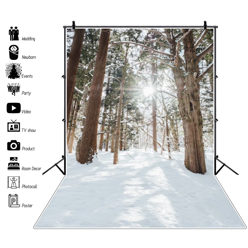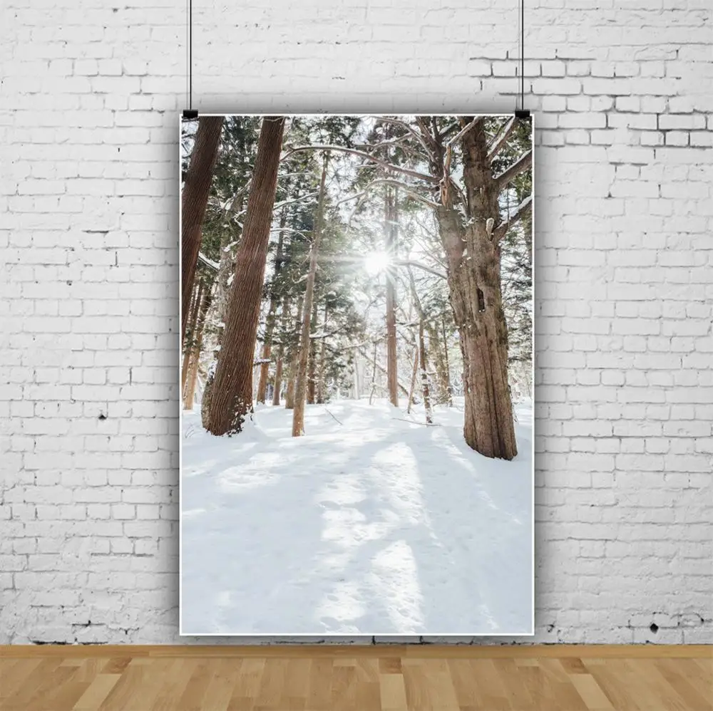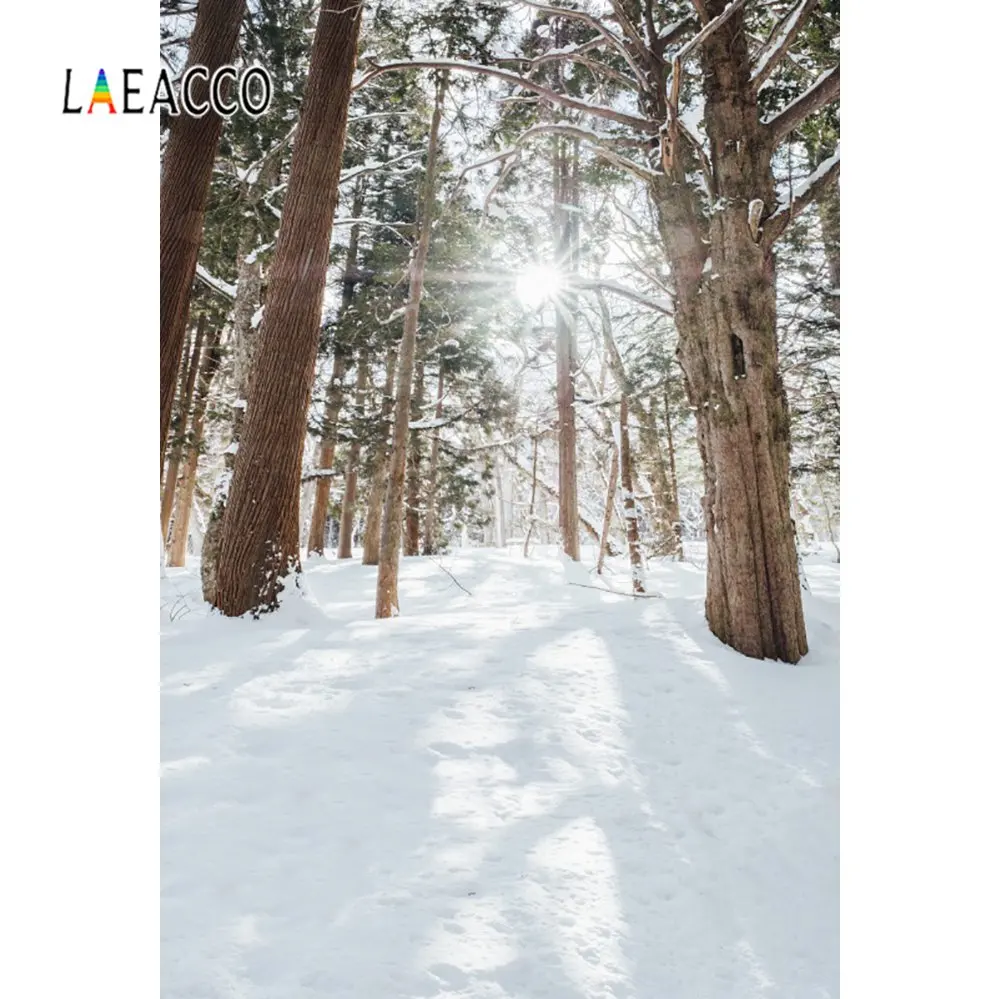 Фон для фотосъемки Laeacco с изображением зимнего снега старого дерева леса восхода солнца утреннего Пейзажа для фотостудии