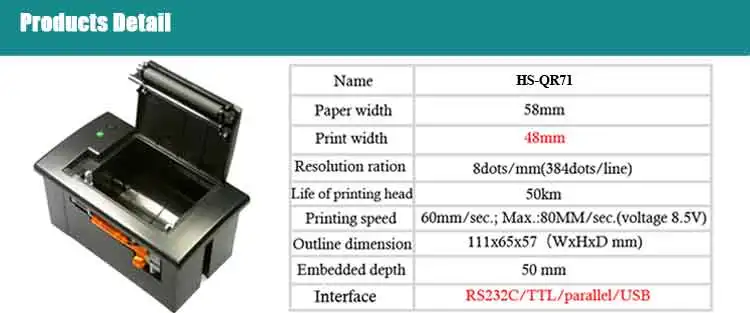 58 мм Встроенный термопринтер для чеков, штрих-код RS232 или TTL-интерфейс для атм и ресторана