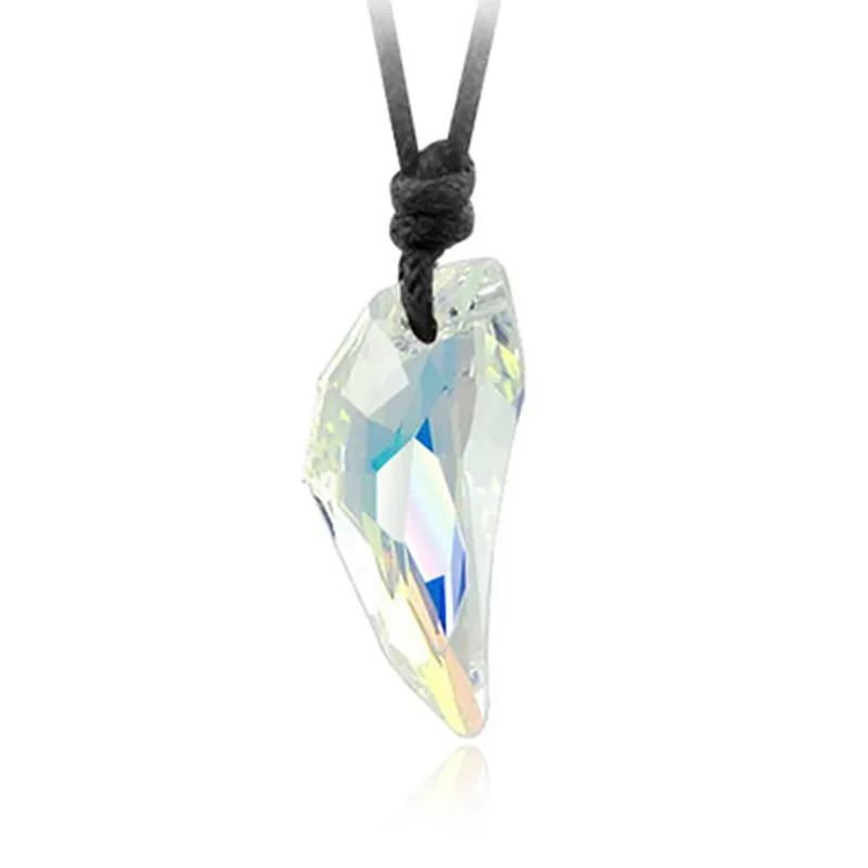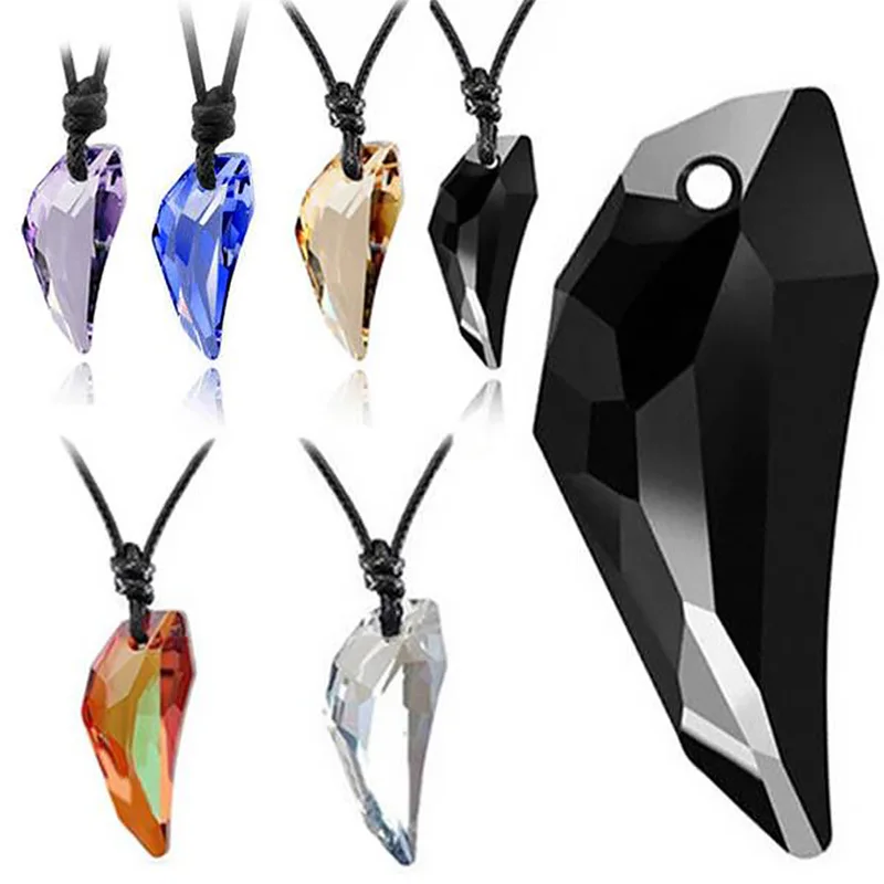 Type 6Wolf Tooth Crystal Pendant Leather Rope Necklace