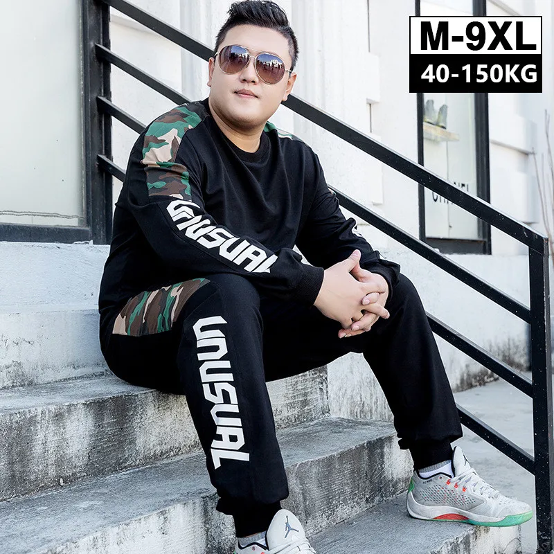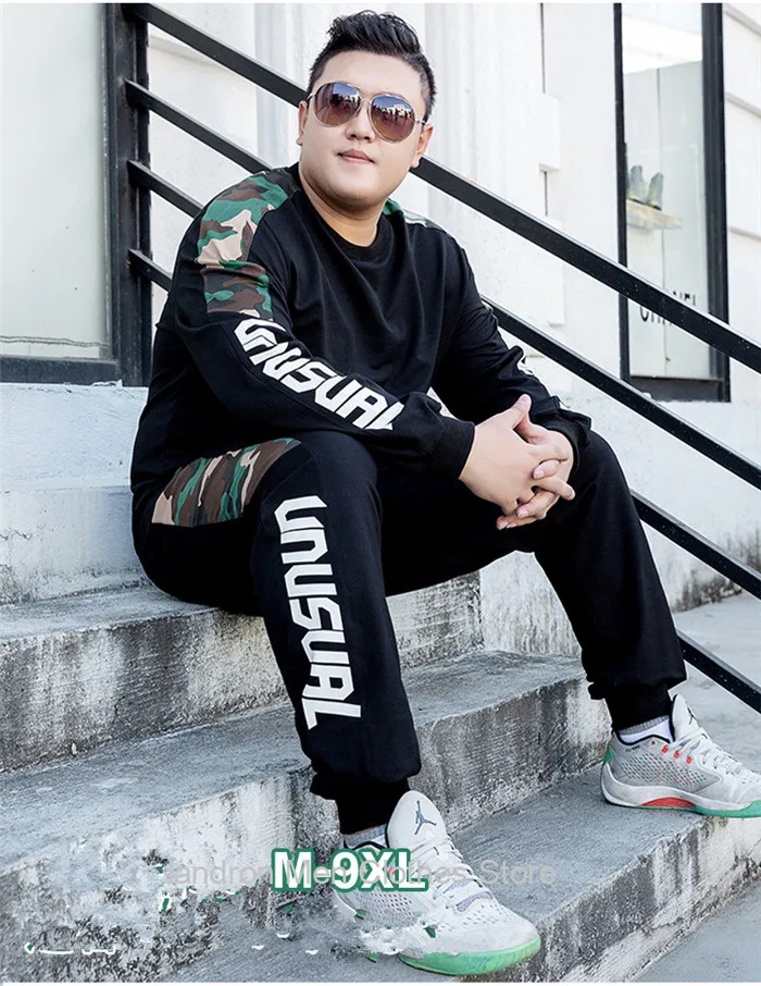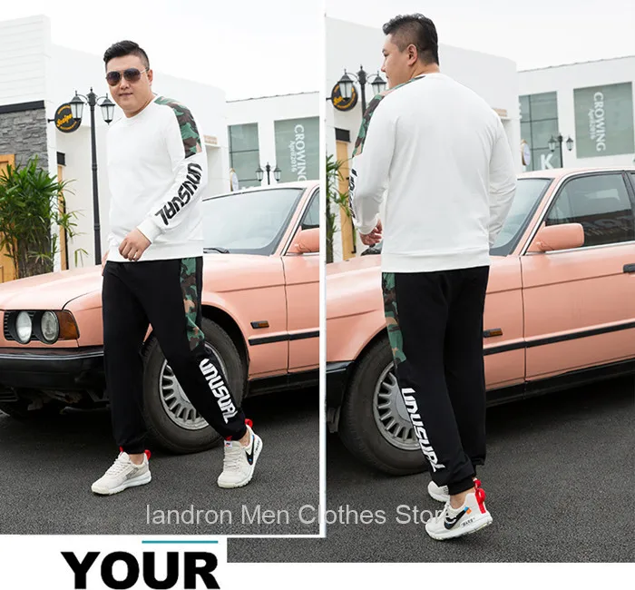 Спортивный костюм мужской с флисовой подкладкой, свитшот, повседневный флисовый костюм, белый костюм-двойка, размеры 6XL 7XL, 8XL 9XL, Осень-зима