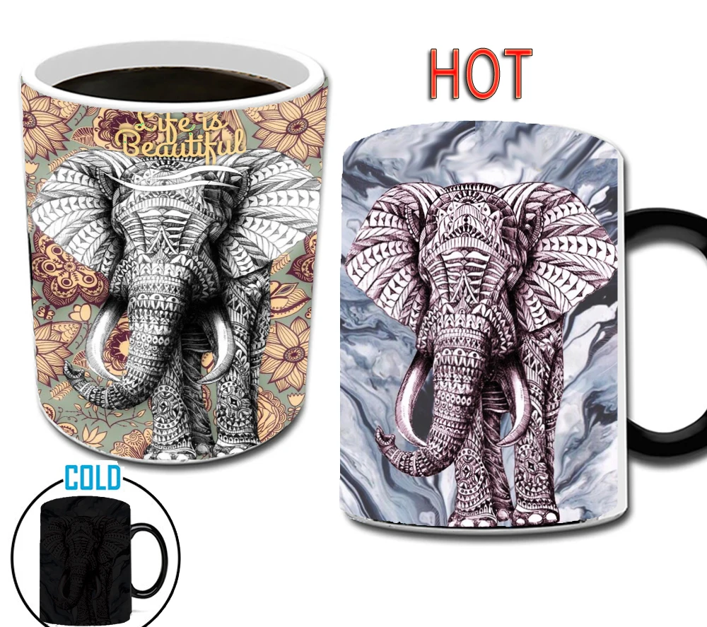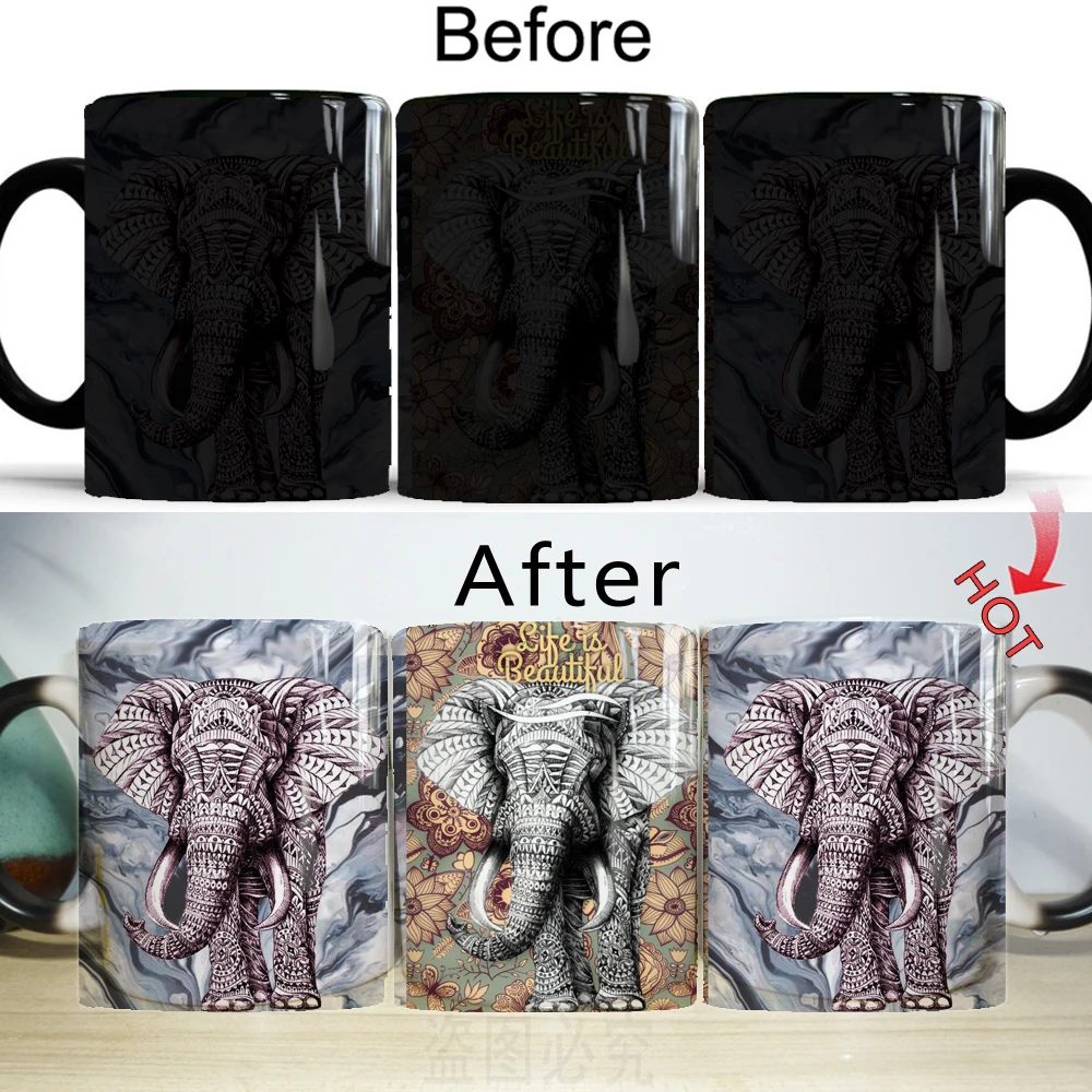 Кружка с изображением слона для струйной печати, волшебные кружки с изменением цвета, креативные керамические кружки для мужчин, друзей, мужа, подарок на день рождения, кружки, 11 унций