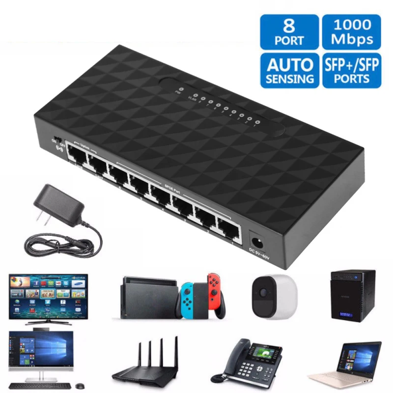 Интеллектуальный коммутатор, 8 портов, гигабитный сетевой коммутатор 1000 Мбитс, гигабитный сетевой коммутатор Ethernet, высокопроизводительный