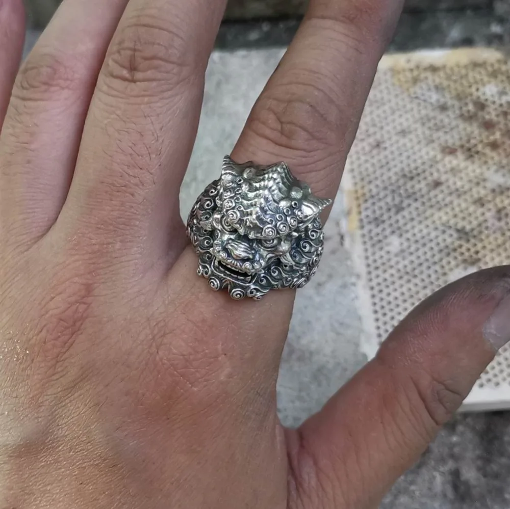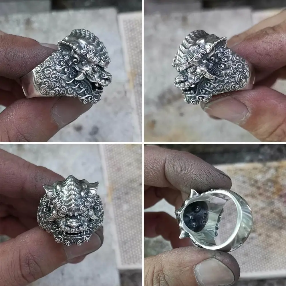 Кольцо в китайском стиле, серебро 925 пробы, с изображением Льва, мужское байкерское, панк, TA210, американский размер 7 15