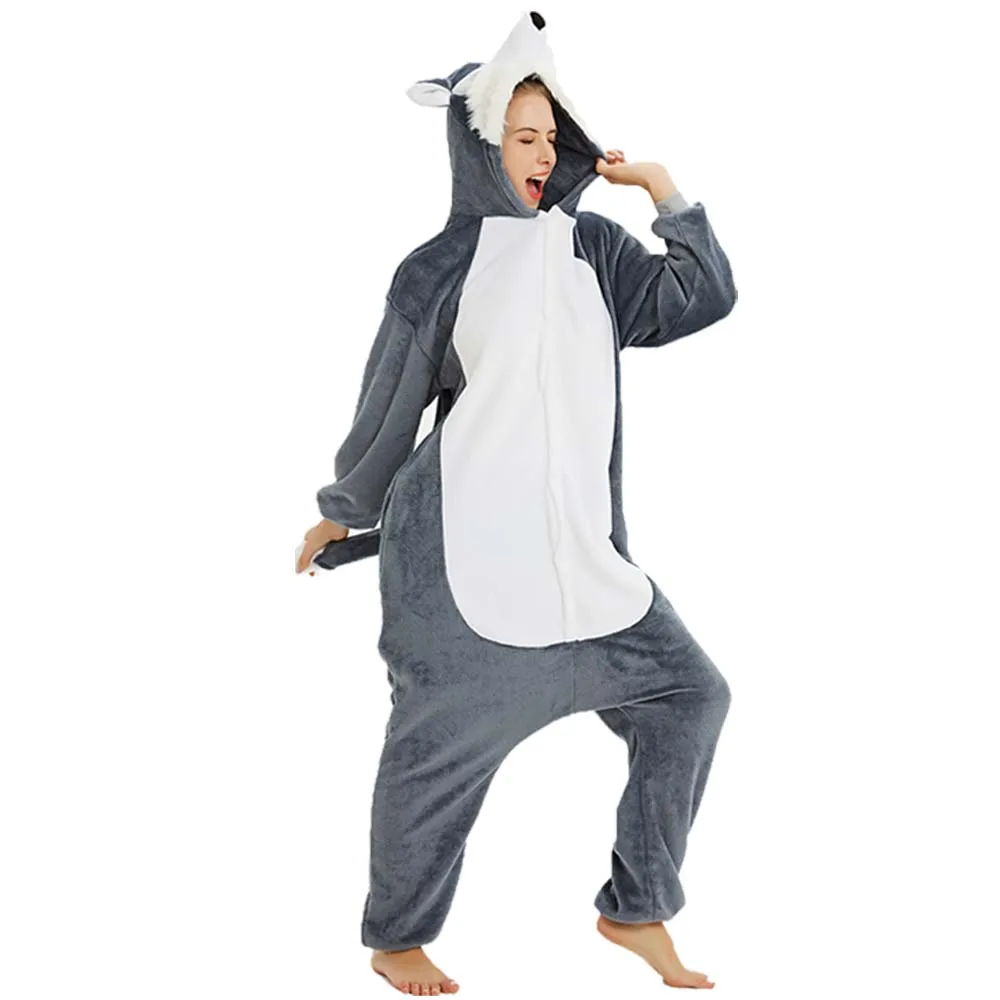 3D ползунки панда зимние комбинезоны в стиле аниме Стич волка хаски Женская Мужская Ночная одежда Единорог Pijima Фланелевая Пижама для взрослых