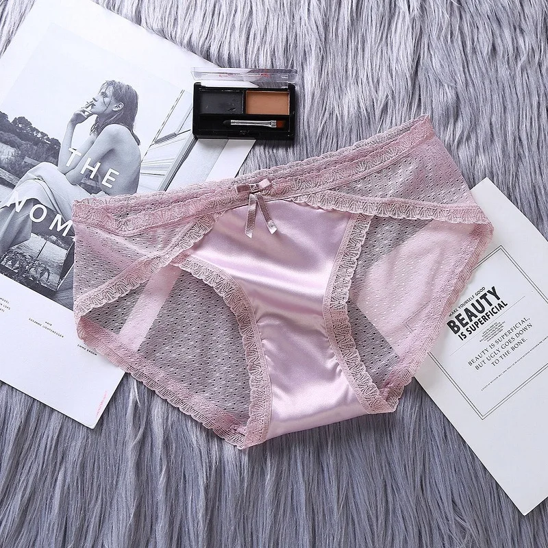 2020 большой Размеры Сексуальная атласная Женская пижама с кружевом трусики Для женщин нижнее белье прозрачное из сетчатой ткани в горошек, трусики на подгузник, мягкие Transparrent трусы