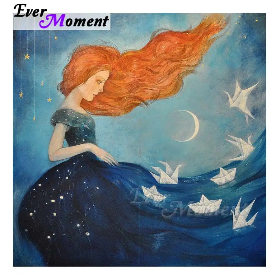 Алмазная мозаика из смолы с красными волосами и луной, 4Y097