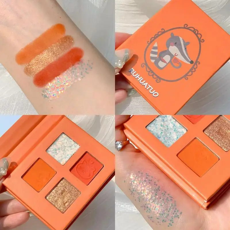 Матовые блестящие тени для век Палитра 4 цветов милые животные тени для век Палитра Макияж Maquillaje водостойкий стойкий мерцающий макияж