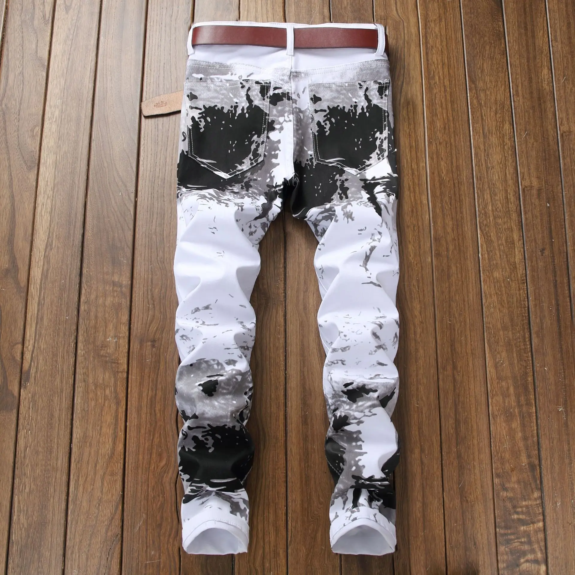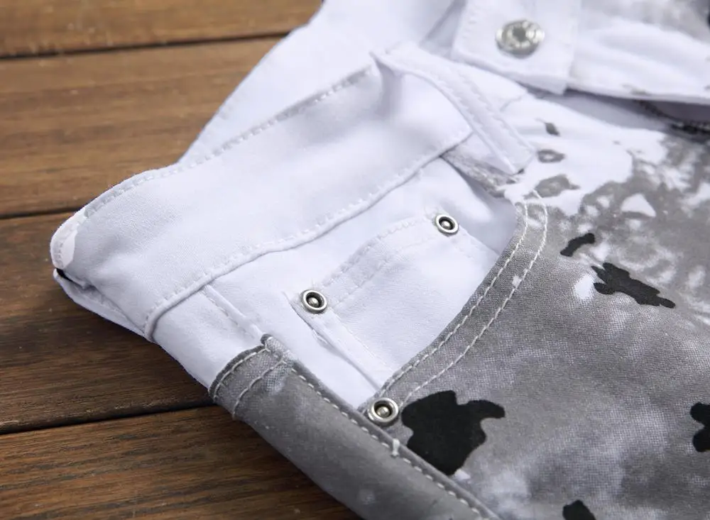 Мужские высококачественные белые джинсы с принтом, облегающие эласт...