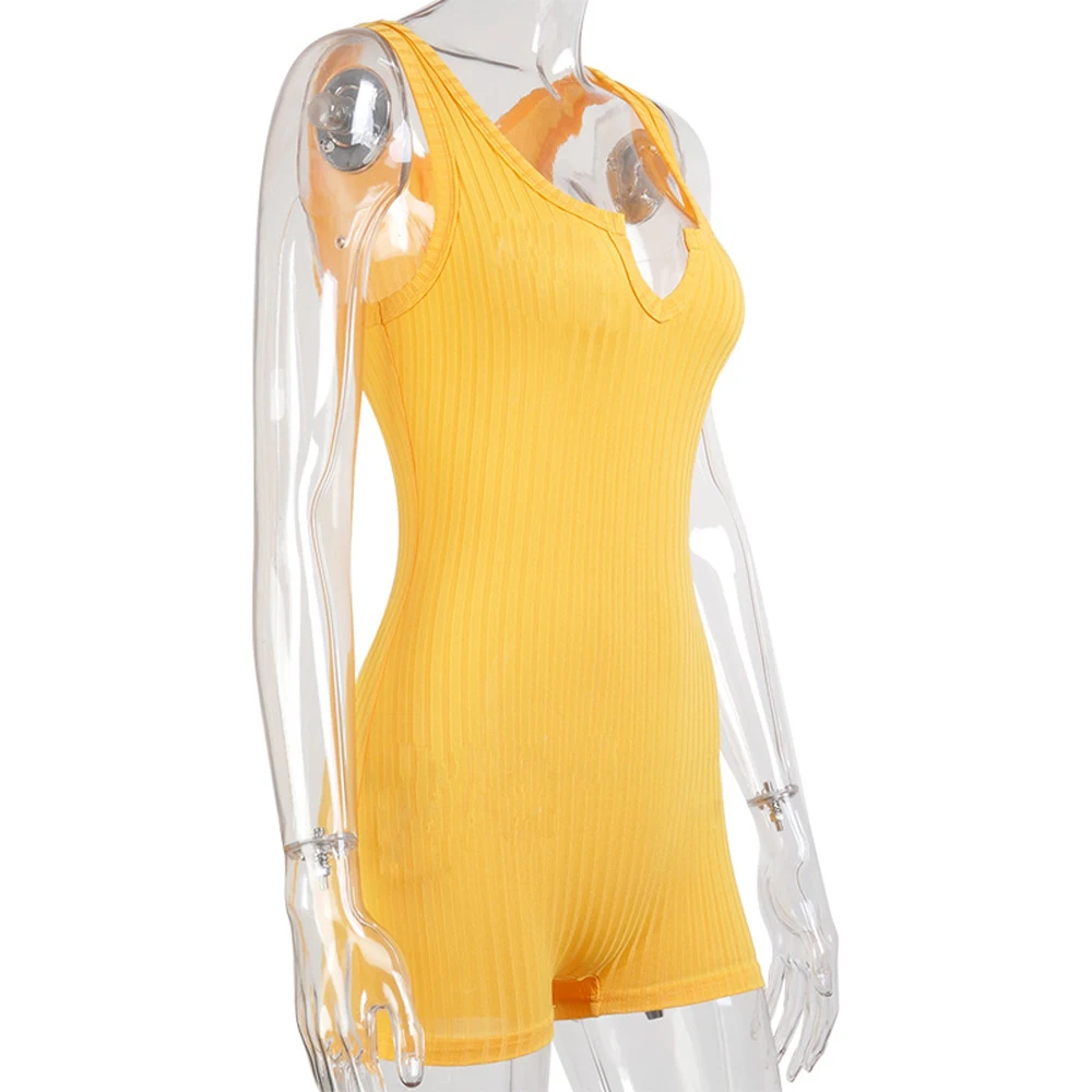 Женский трикотажный комбинезон, однотонный эластичный комбинезон в рубчик, с V-образным вырезом, без рукавов, лето 2021