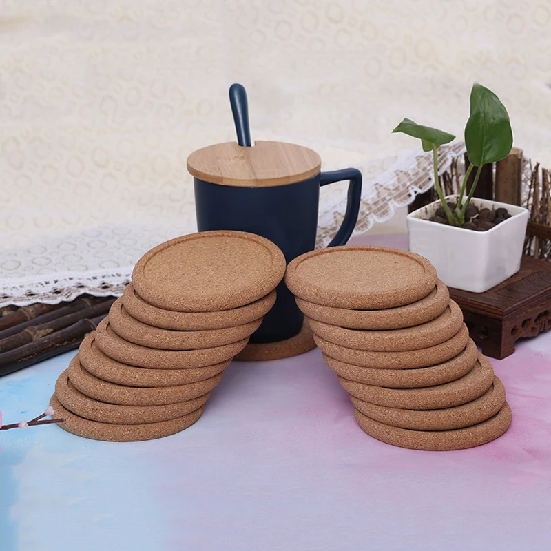 Круглая пробка в комплекте из 2 предметов, подставка для кофейной чашки, коврик для чая и напитков, термостойкие Нескользящие подставки, декоративные коврики для винного стола