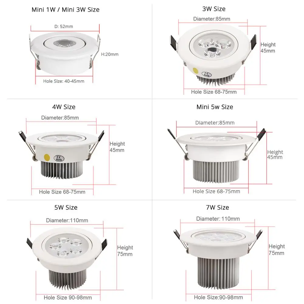 1 шт. вниз светильник светодиодный 1 Вт 3 Вт 4 Вт 5 Вт 7 Вт Точечный светильник с регулируемой яркостью IP44 Встраиваемая Светодиодная лампа Светодиодный светильник регулируемый AC110V 220 В