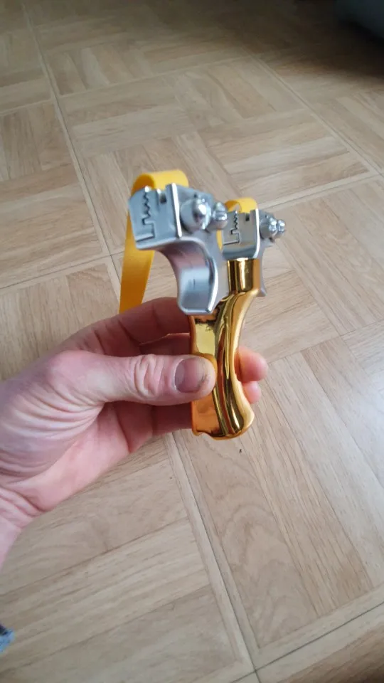 Хорошая рогатка,дети довольны.Удобная рукоять,прицел нормальный,есть сменные резинки