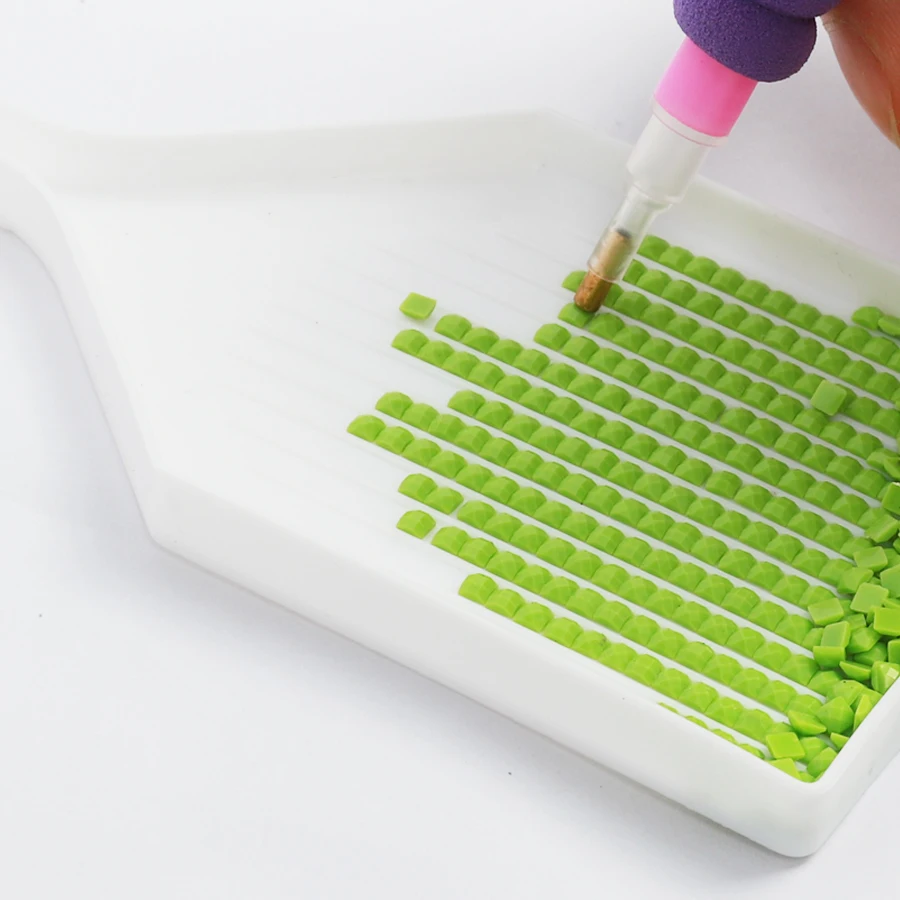 1. Выберите один цвет в соответствии с цветовым кодом и поместите алмазы в тарелку;2. Встряхивание пластины, чтобы сделать алмазы вверх;3. Налейте ручку клеем, а затем приклейте ее к полотну;4. После завершения слегка прижмите бриллианты рукой или книгой, чтобы они были идеально закреплены.Советы: алмазы несъедобные, пожалуйста, держите их подальше от маленького ребенка.