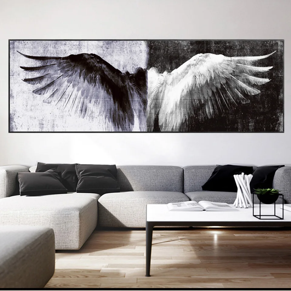 Черный и белый ретро крылья домашний декор Алмазная Картина Вышивка крестом Винтаж Крылья Ангела картина для гостиной украшения