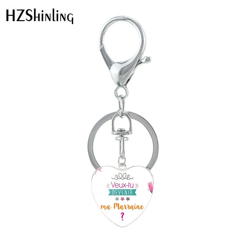 Брелок с подвеской в виде сердца Veut Tu Etre Ma marхрон, вы хотите быть моей крестной, стеклянный, для женщин, 2020