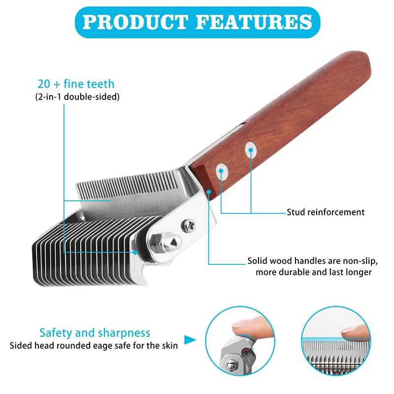 Профессиональная щетка-Расческа для собак 2 в 1 с двойной головкой, безопасный качественный инструмент для ухода за домашними животными, для удаления начесов
