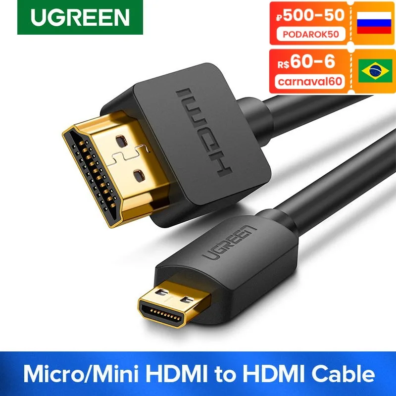 Кабель UGREEN Micro HDMI, адаптер 4K 60 Гц, Ethernet Аудио возврат для GoPro Raspberry Pi4 Micro HDMI, совместимый кабель 4K