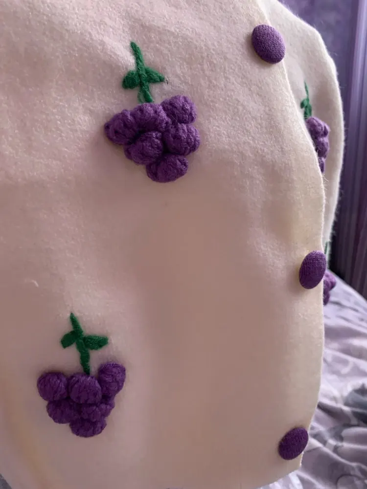 Доставка быстрая. Костюм прекрасный! Очень мягкий, но форму держит хорошо. Влюбилась в эти виноградинки!