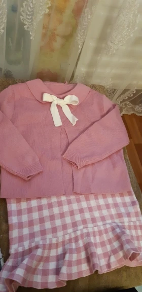Прекрасное качество!Бантик открепляется!Очень мягкий на ощупь!!!Теплый костюмчик!Резиночки на рукавах хорошие!на юбочке хорошая резинка!Продавец помог в выборе размера!