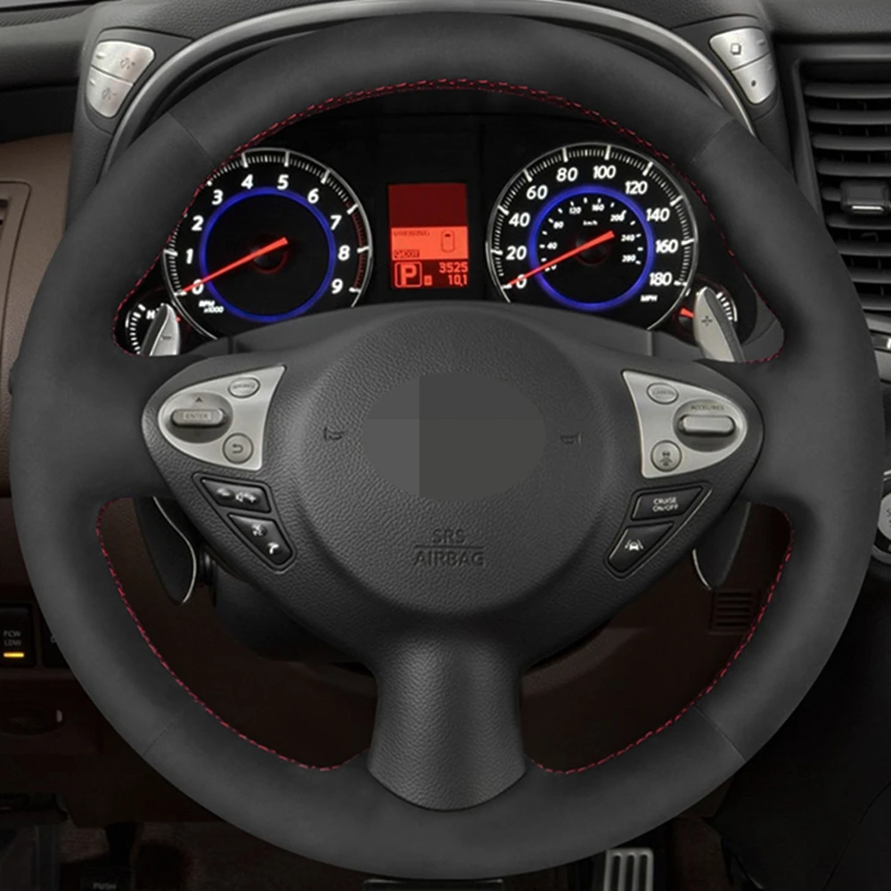 Черная замша чехол рулевого колеса автомобиля для Nissan Juke Maxima 2009-2017 Sentra X-Trail SV 370Z 2008-2020 Infiniti FX FX35 FX37 FX50 QX70