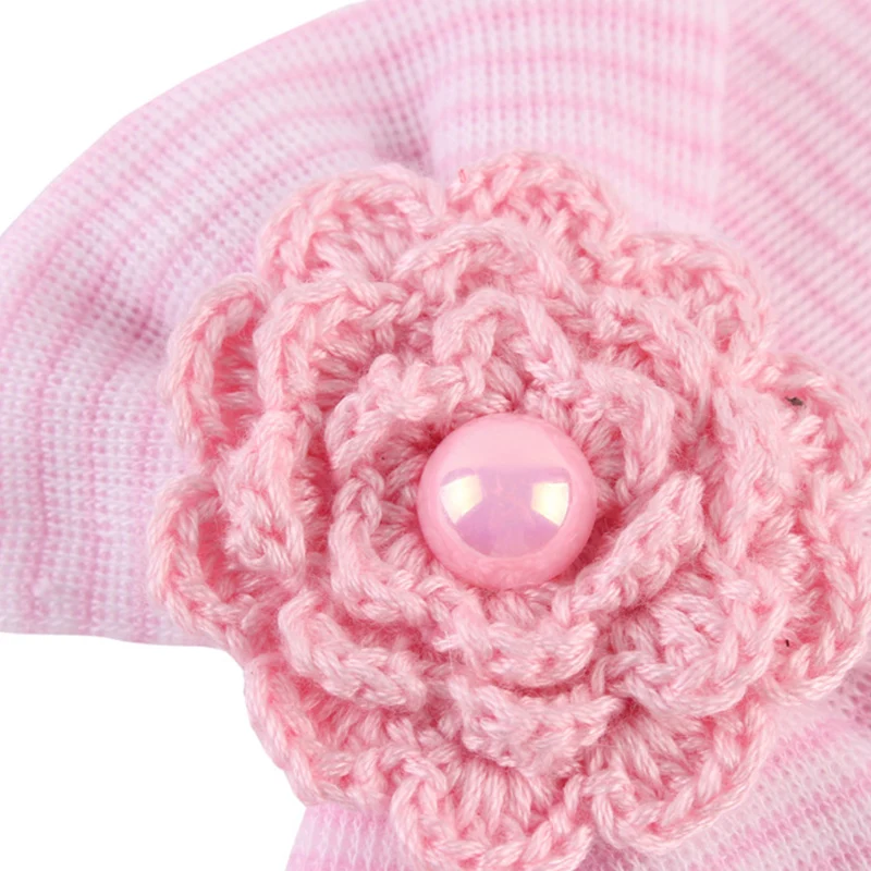 Для новорожденных детская шапка для младенцев; Детские теплые Шапки хлопковые полосатые шапки мягкие больница, розового и белого цвета для мальчиков и девочек, вязаные шапочки с бантом для новорожденных детей от 0 до 6 месяцев