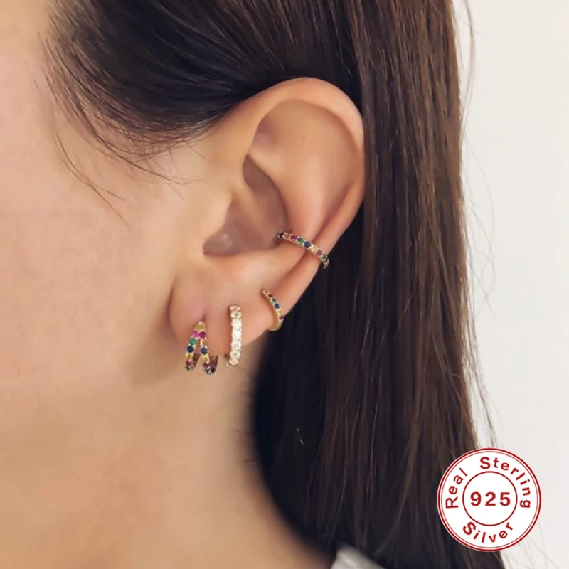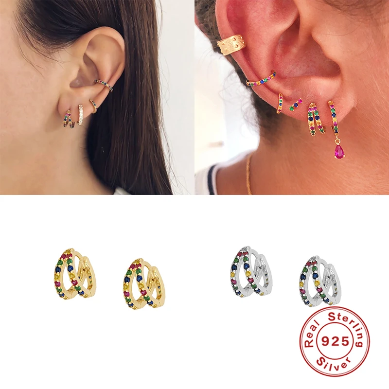 Женские серьги Canner Huggie, разноцветные кольца из стерлингового ...
