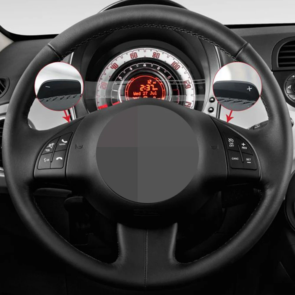 Сделай сам черного цвета из натуральной кожи и замши ручной работы чехол рулевого колеса автомобиля для Fiat 500 2007-2015 500e 2014-2018 500C 2014-2017