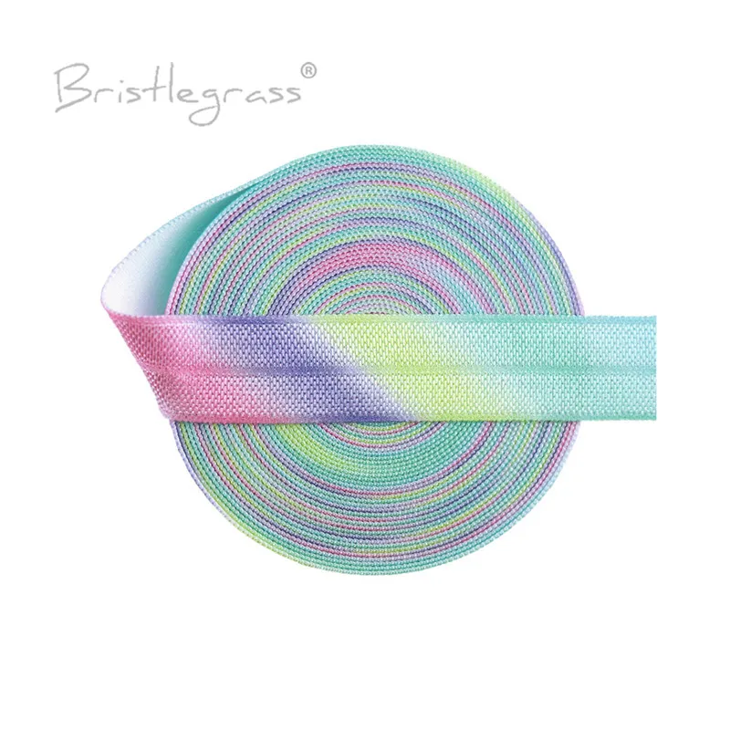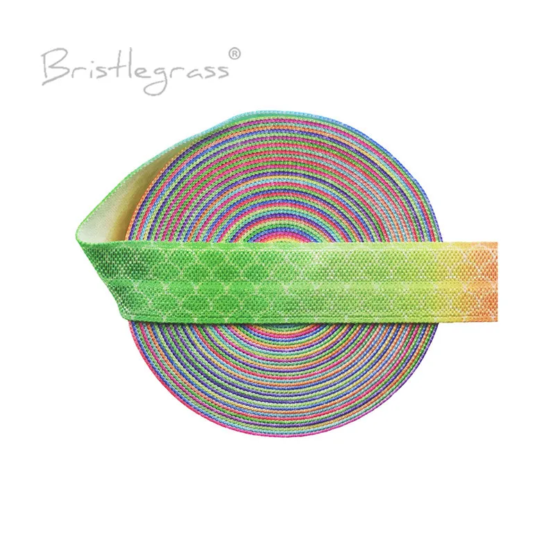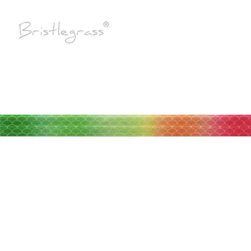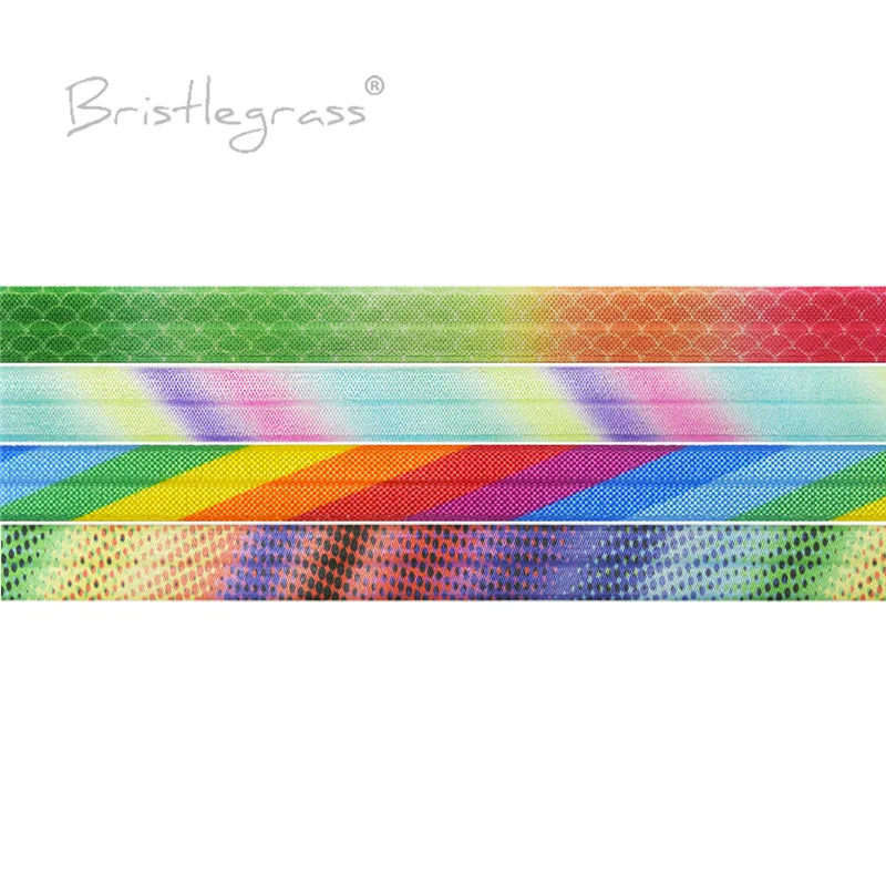 BRISTLEGRASS Combo 8 ярдов 5/8 "15 мм Радужная чешуя Русалки принт складывается поверх резинок FOE спандекс атласные ленты для волос галстук платье Шитье