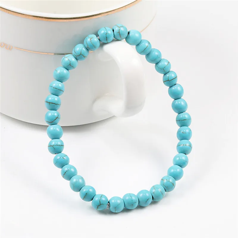 Браслет женский, 6810 мм, из натурального камня, голубой бирюзовый нитей