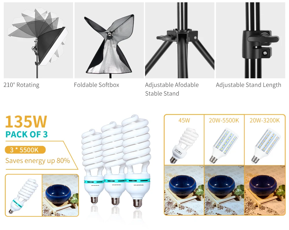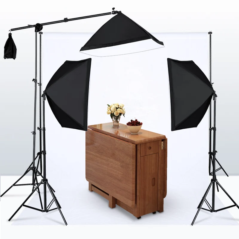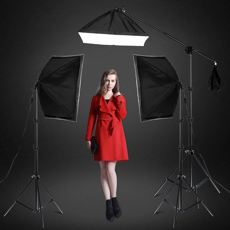 Софтбокс 3*50 см × 70 см с держателем лампы3*45 Вт Холодный светильник3*2 м светильник-подставка1 * стрела (включая одно колесо и песочница)1 * сумка Оксфорд