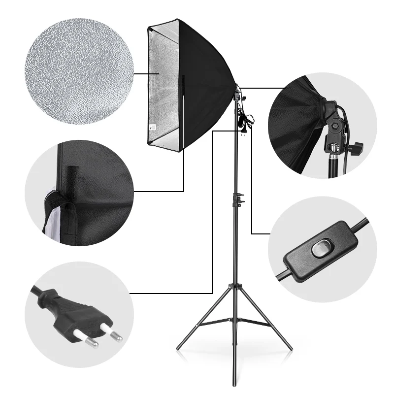 Это идеальный набор софтбоксов для цифрового фото-и видеосъемки.Лампа для фотографирования, Цоколь E27 подходит для большинства осветительных приборов.Софтбокс с одной лампой 50x70 см: белая Складная мягкая ткань, Высококачественная Светоотражающая частица. Серебристый внутренняя уход за кожей лица, чтобы свести к минимуму светильник потери и максимизировать светильник распространения. Безопасное и нетоксичное полиэфирное волокно, 4 гибких шатуна.Светильник: высота в сложенном виде 27 дюймов (68 см), рабочая высота 79 дюймов (200 см). Высокое качество, стабильный и прочный, прост в установке и использовании.75-140 см регулируемая консольная стойка + поворотный зажим + песочный мешок: дать вам гораздо более широкий спектр выбора положения; Помочь вам найти идеальное место освещения.Сумка Оксфорд: может содержать все детали продукта, легко носить с собой.