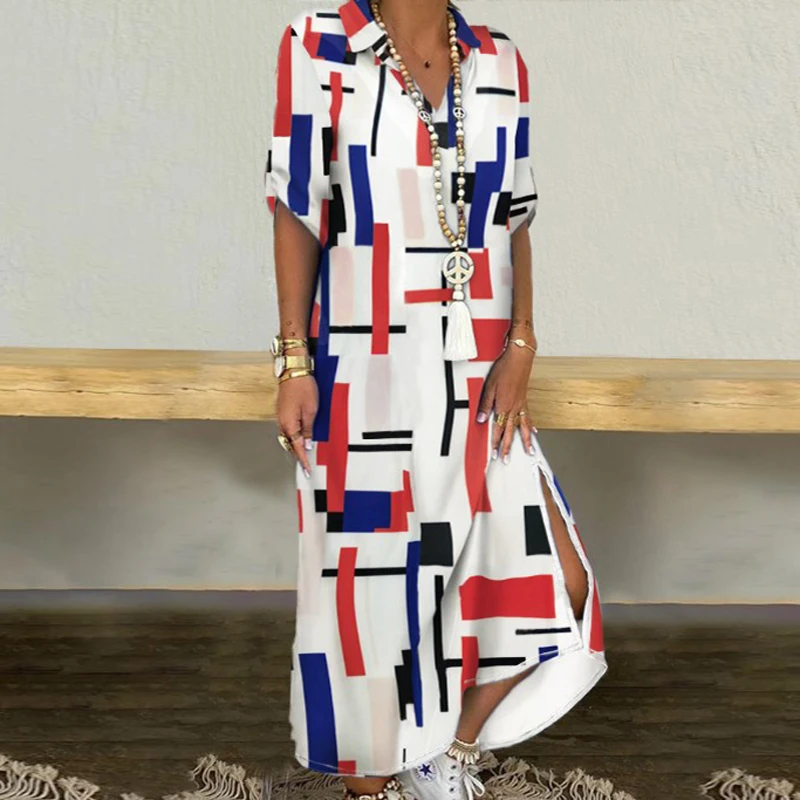 Женское длинное платье-рубашка с отложным воротником, летнее платье с принтом цепей и пуговицами, повседневное, Осеннее пляжное макси-платье с длинным рукавом, размеры 4XL