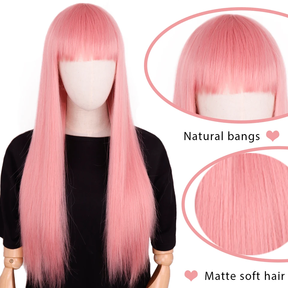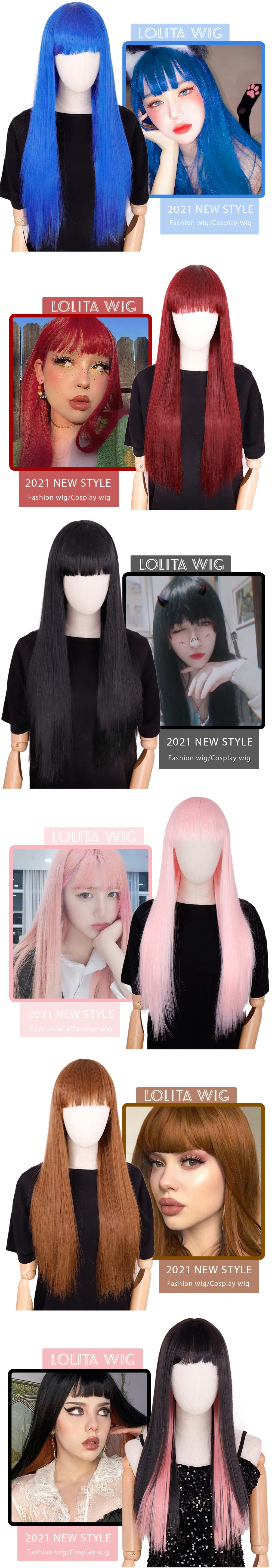 Парик Lolita синтетический розовый парик светлый парик длинные прямые волосы с челкой натуральные парики для женщин парик для косплея