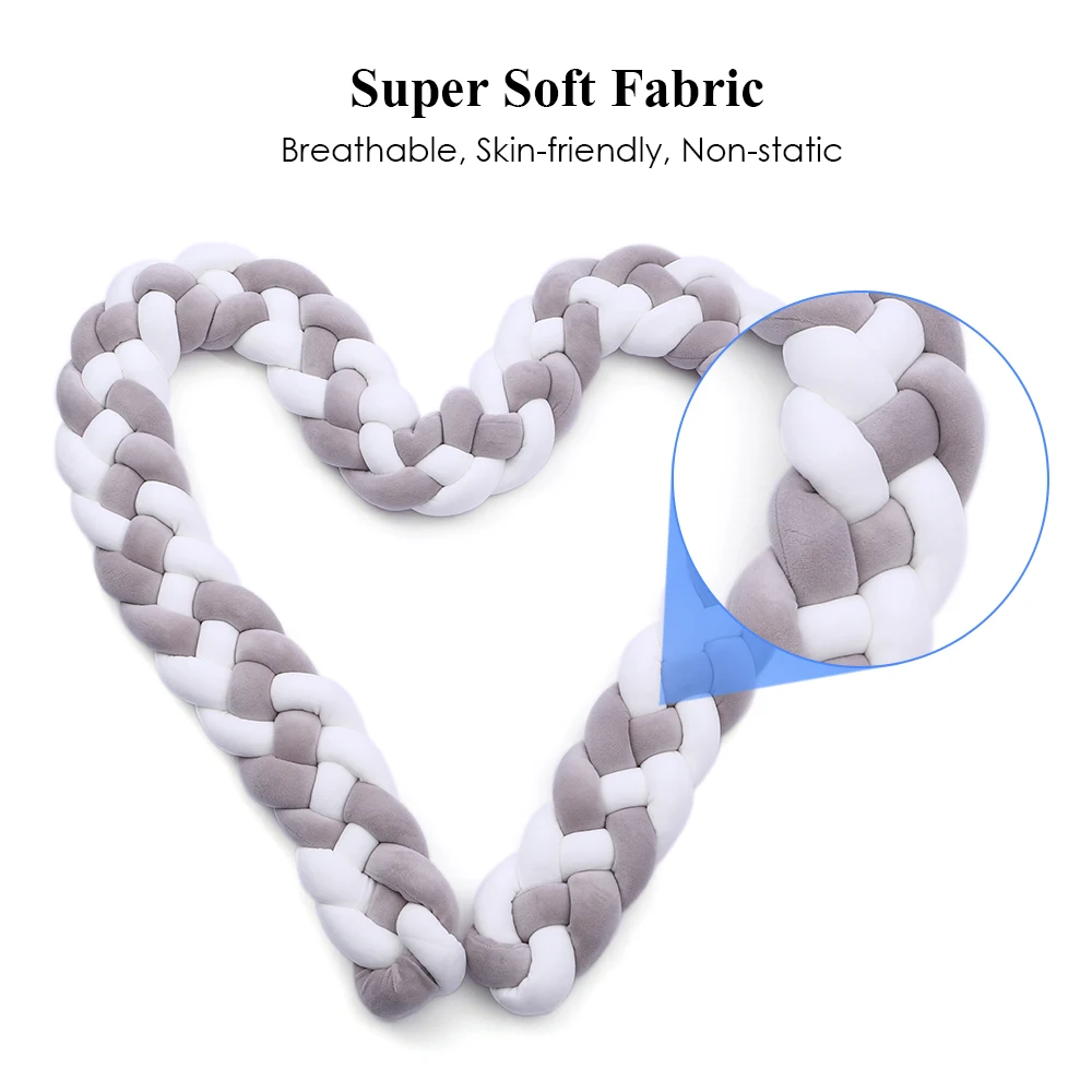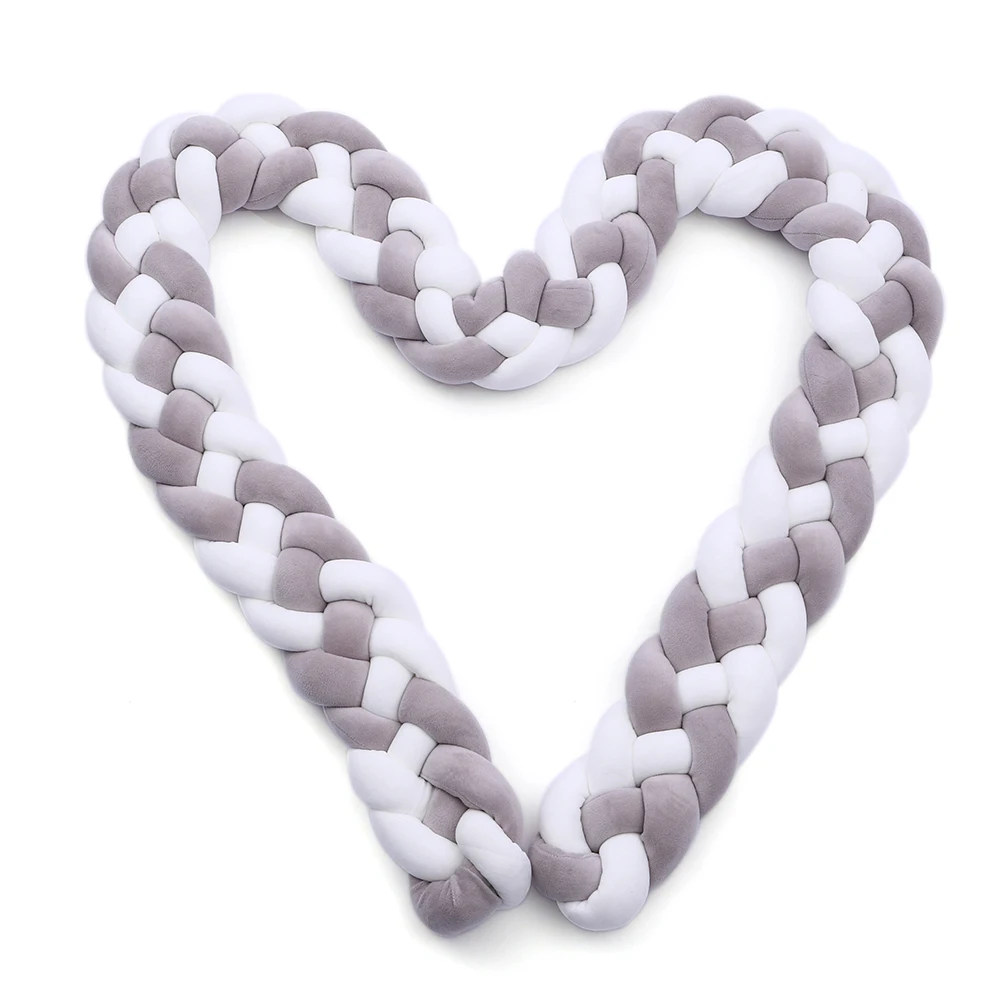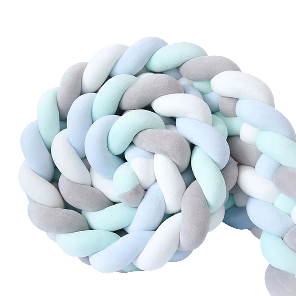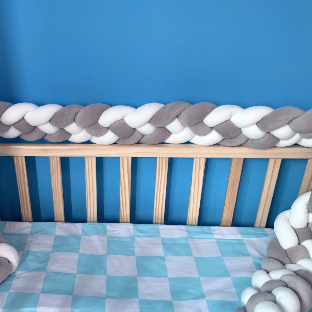 Узел бампера ручной работы сплетен из безопасного материала. Это идеальный способ обновить украшение комнаты вашего ребенка и может легко регулироваться под любую зону комнаты, например, кроватку, пеленальный столик, кровать для малышей. Поможет вам, если ваш малыш закатится в бортики кроватки по ночам или ударится головой или руками во время сна. И это может способствовать способности ребенка визуальной многоцветной стимуляции.Особенности:Дышащая, приятная для кожи и нестатическая хлопковая ткань, прочная и моющаяся.Способствуют максимальному потоку воздуха и снижают риск удушья, безопасны и комфортны для малыша.Мамы могут хорошенько выспаться ночью, потому что способны защитить малыша от скатывания в бортики кроватки или ударов головой или руками во время сна.Можно свободно комбинировать, чтобы уместить вашу кроватку, и легко устанавливать-просто привяжите ленты на забор кроватки.Комфортная мягкость, можно вложить в любую форму по мере необходимости, например, квадратную, прямоугольную, круглую или даже в форме сердца.Также можно использовать в качестве подушки для спины, подушки для сна или даже декора постельного белья, прекрасный подарок для ребенка и мамы.Характеристики:Цвет: серый + белый/серый + розовый/синий + розовый/розово-красный + белый/серый + белый + синий + зеленый/розовый + белый + синий + зеленый (необязательно)Длина: 1 м/2 м/3 м (опционально)Форма: коса из 4-х нитейМатериал: супер мягкая ткань хлопок + ПП хлопокРазмер товара: (держать ровно на полу) 12,5*6,5 см/4,9 * дюйма (ширина * высота)Посылка: 32*32*19 см/12,60*12,60*7, 48 дюймовВес посылка: 1,05 кгКомплектация:1 * узел-бампер для детской кроватки