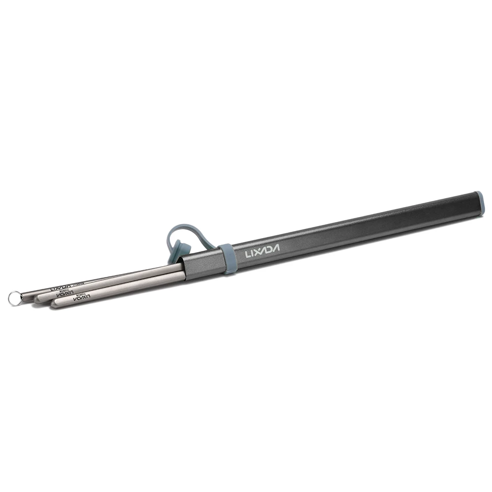 Этот набор инструментов для улицы включает в себя пару палочек для еды, питьевую соломинку и чистящую щетку, которые хранятся в алюминиевой трубке для удобства переноски, отлично подходит для кемпинга на открытом воздухе, туризма, пешего туризма, альпинизма, путешествия и другие мероприятия.