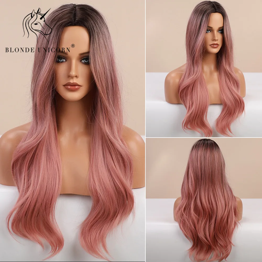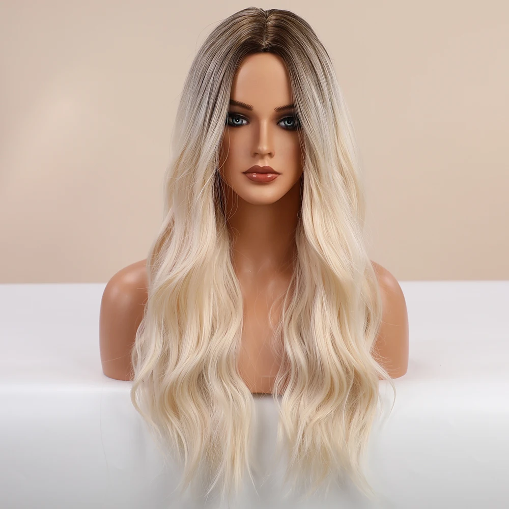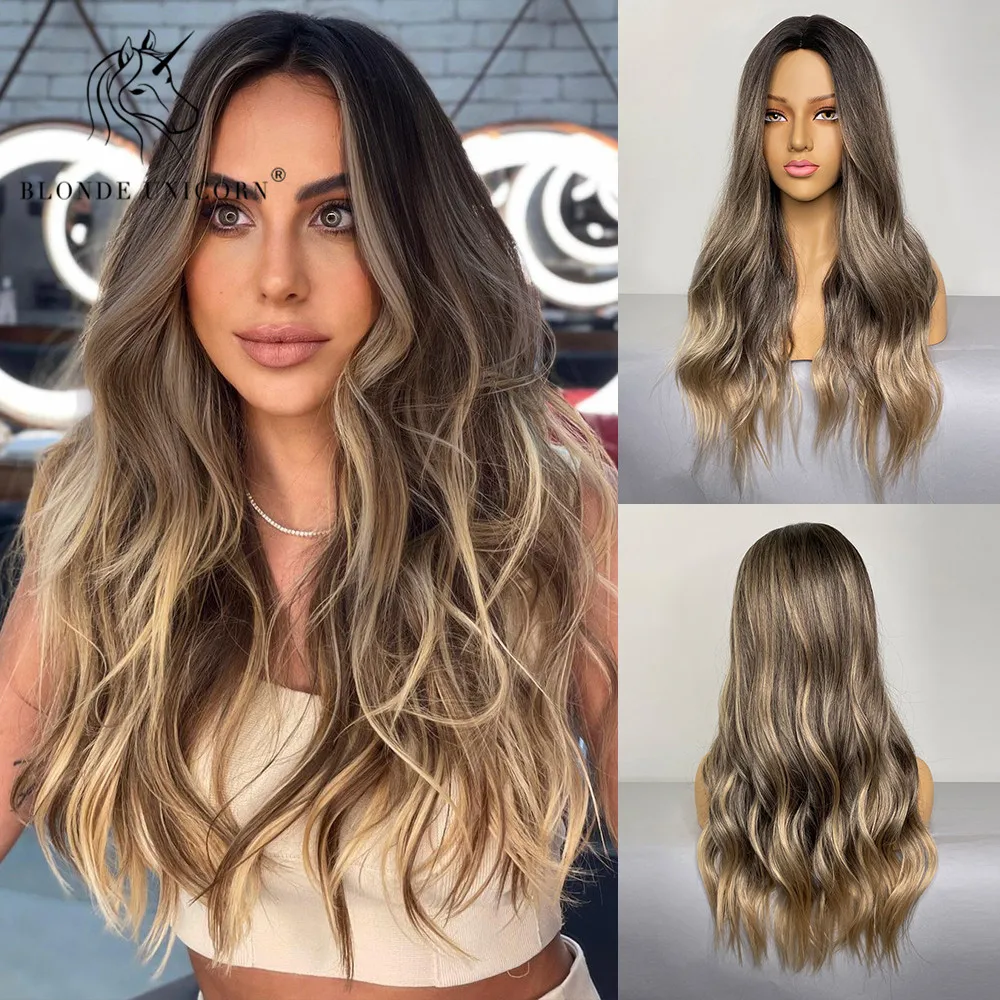 Парик для женщин из Синтетических Длинных натуральных волнистых волос Блонд единорог, коричневый корень, Омбре светильник лый блонд, платина, термостойкие волосы из волокна