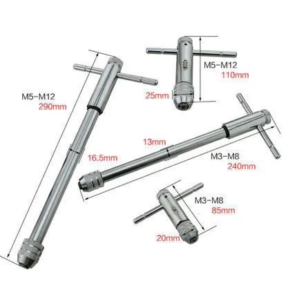 Ручной инструмент Т-образный с трещоткой M3-M8 M5-M12 удлиненный Реверсивный для метчиков набор метчиков гаечные ключи для нарезания проволоки регулируемый