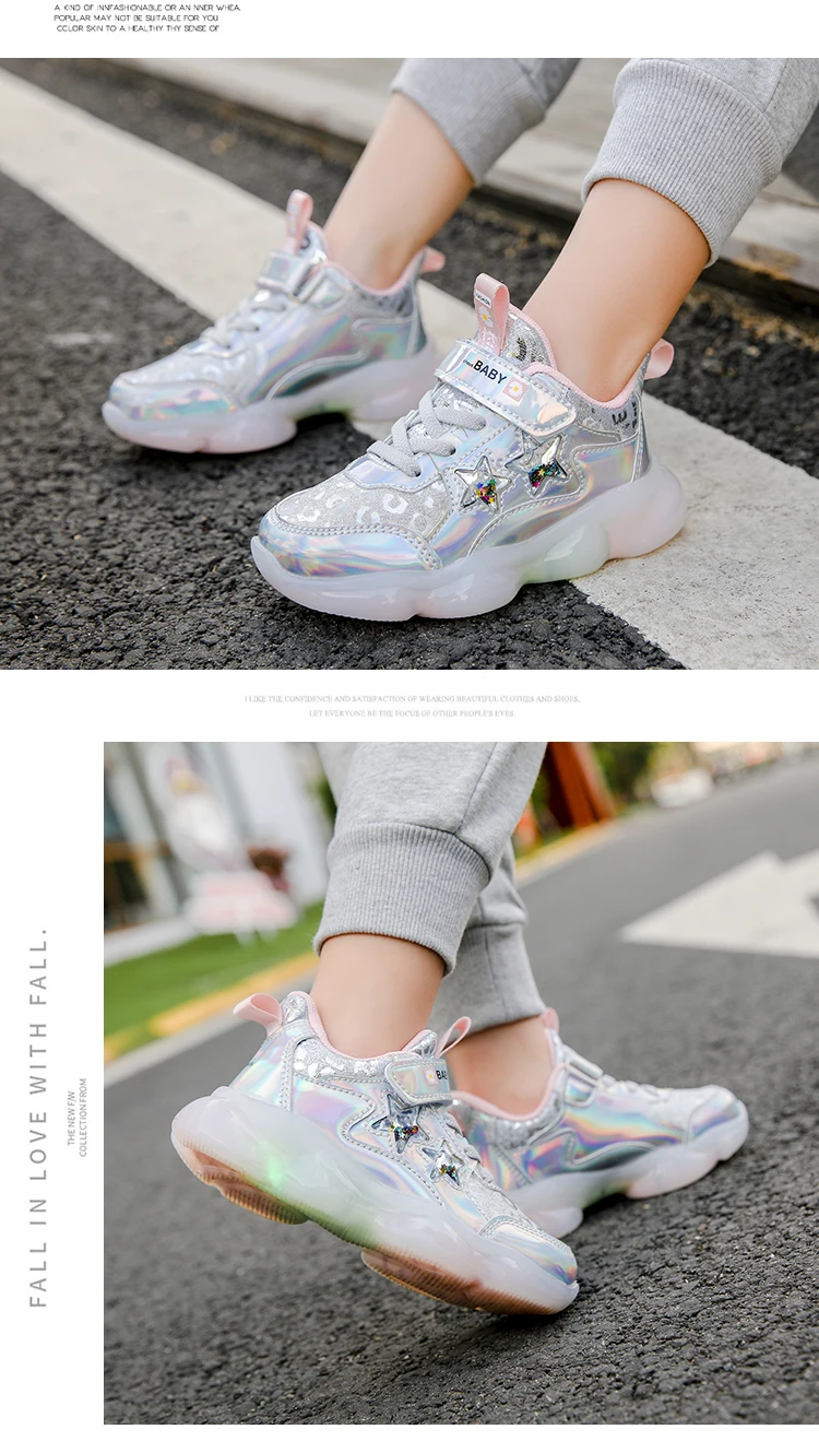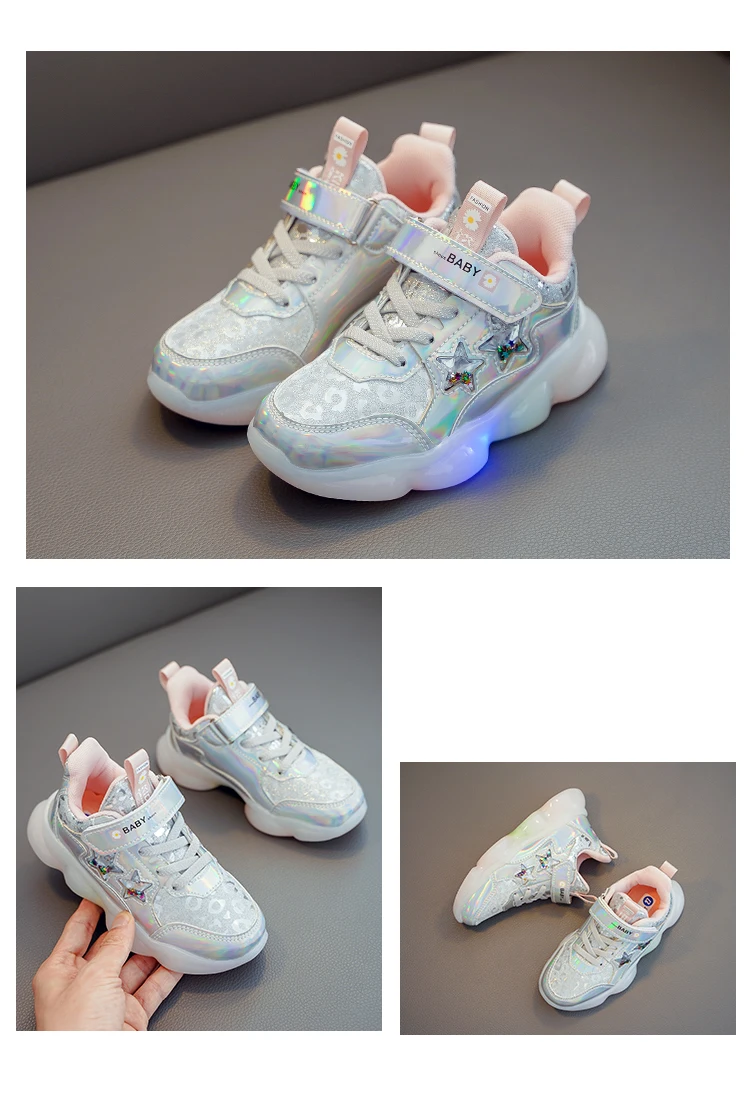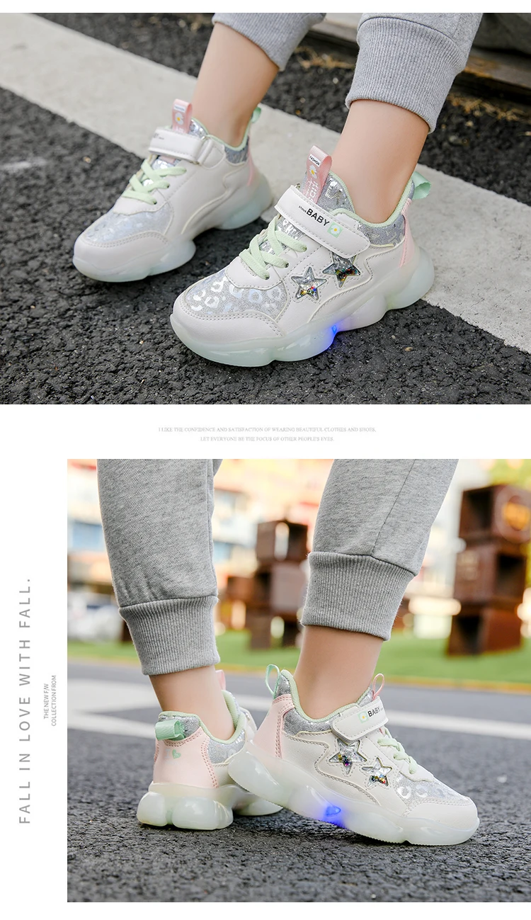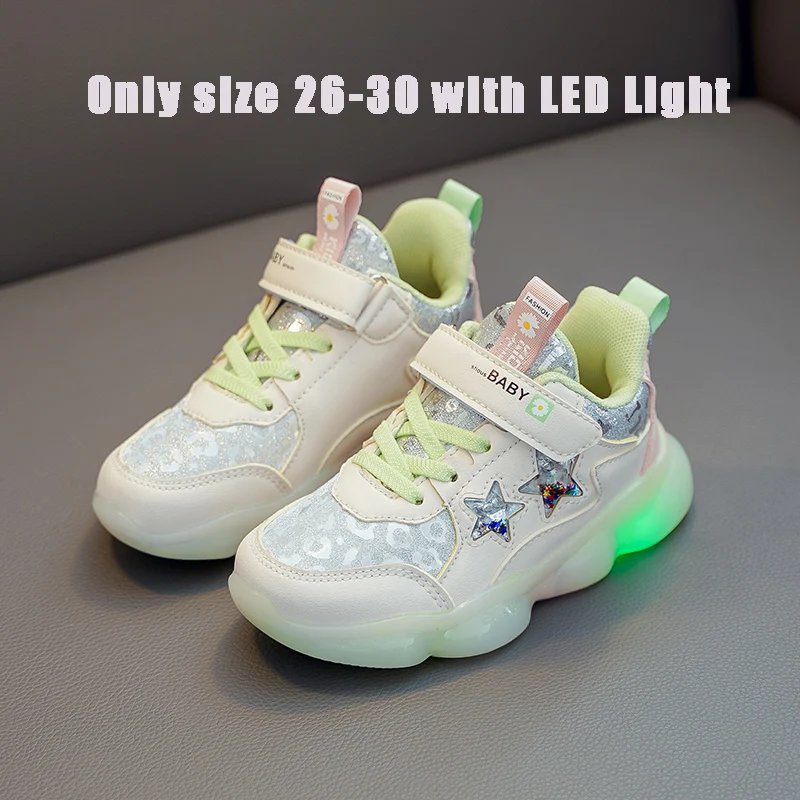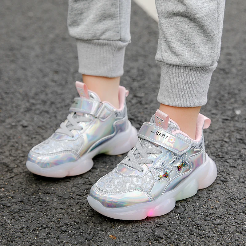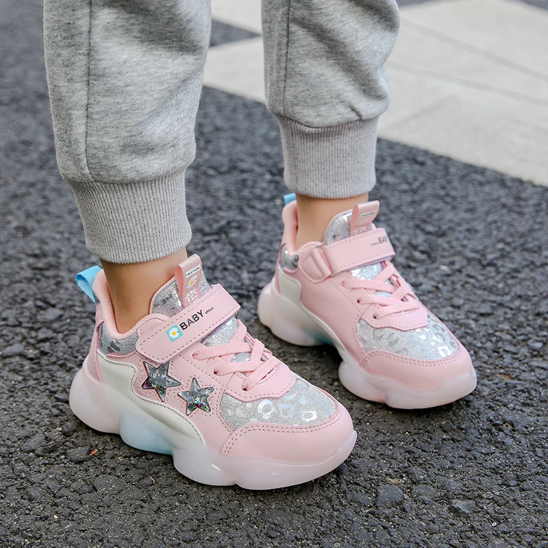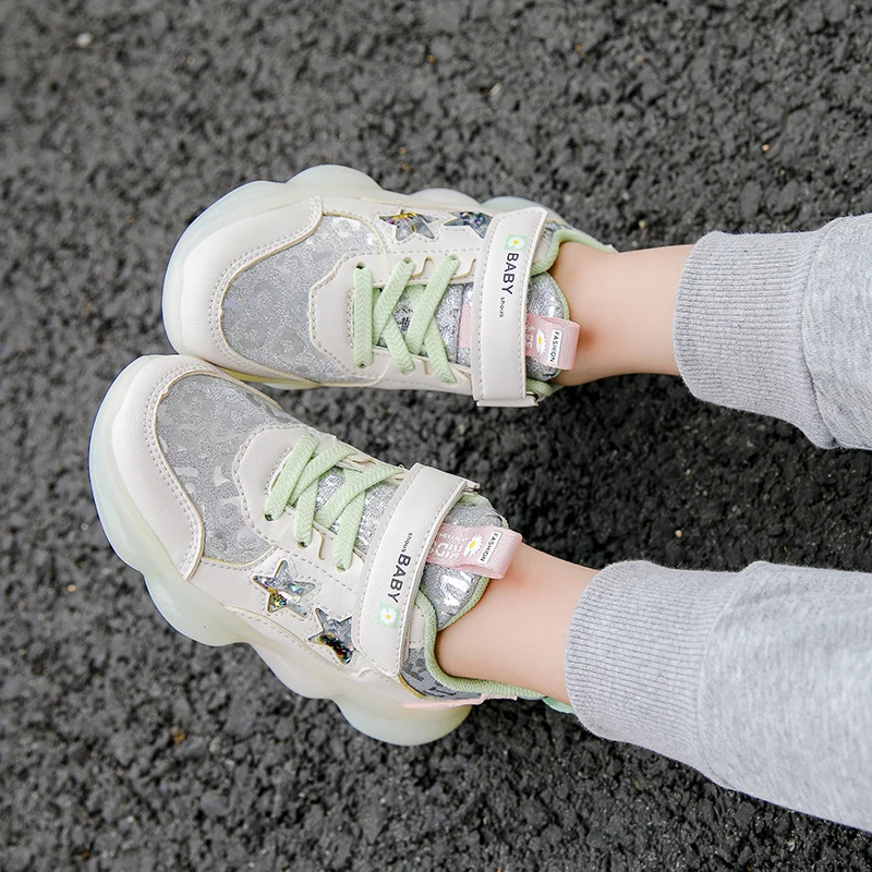 Осенние детские кроссовки со светящимися вставками; Светодиодный светильник для девочек; Детская повседневная обувь; Дышащая Спортивная обувь со звездами; Zapatillas Tenis Infantil