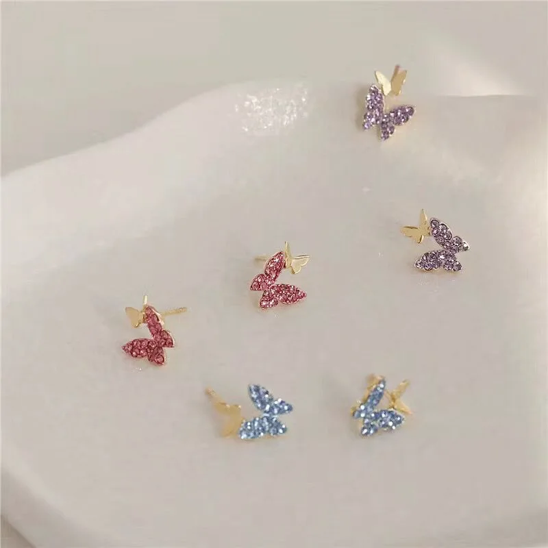Серьги-гвоздики в Корейском стиле женские, Элегантные Простые милые Винтажные Украшения в виде крыльев бабочки, звезд, стразы