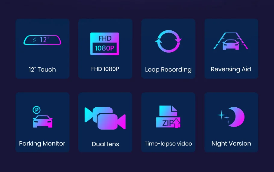 Разрешение экрана высокой четкости обеспечивает четкие изображения днем и ночью. Высокое качество воспроизведения. Это может быть использовано в качестве доказательства аварии или кражи. Функция сенсорного экрана очень гладкая. Вы можете легко просмотреть меню. Просмотрите меню.