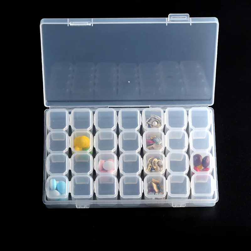 Пластиковая коробка с бусинами, 28 ячеек, аксессуары для гвоздиков, сережек, колец, ожерелий, органайзер для хранения ювелирных изделий, чехол для дисплея