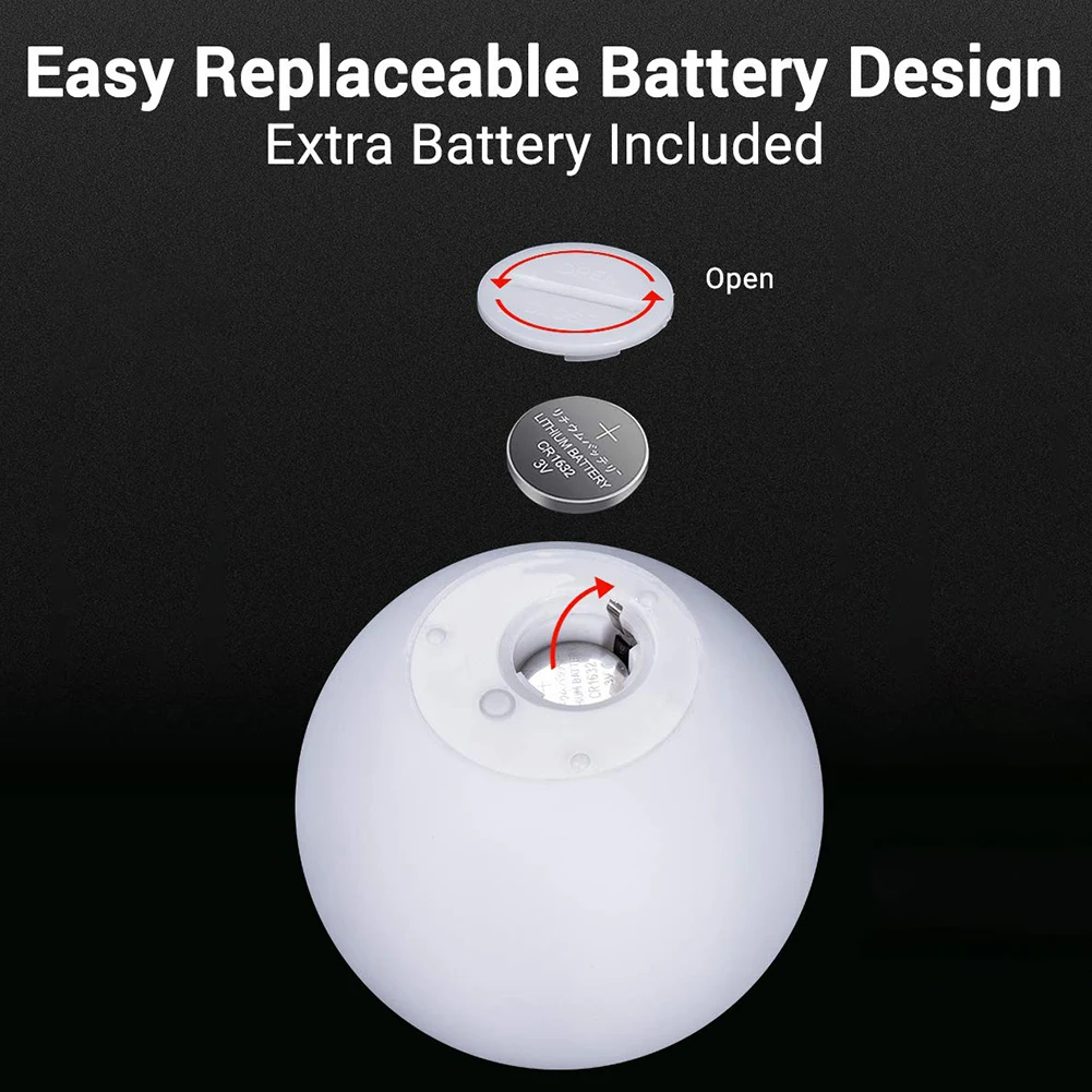 Перед использованием: Выведите светодиодный шар светильник Используйте отвертку или монетницу, чтобы открыть дно светодиодный одного шара. Достаньте чехол для аккумулятора и вытащите пластиковые полосы между аккумуляторами. Плотно закройте нижнюю светодиодный одного шара. Светодиодный шар теперь готов к использованию. Вытащите пластиковую полоску на нижней части пульта и подготовьте пульт дистанционного управления. Функция: Нажмите кнопку «ON» на пульте управления и направьте светодиодный шарик, чтобы активировать устройство. Этот светодиодный шаровой светильник может плавать на воде или вешать его. Пультом управления можно управлять до нескольких светодиодный-шариков. Выбор цвета: нажмите на желаемый цвет на пульте и выберите желаемый монохромный режим. Наименование товара: светодиодный шаровой светильник для бассейна Материал: пластик Режим питания: 2 батареи CR2032 (входят в комплект) Батарея пульта дистанционного управления: 1 батарея CR2025 (входит в комплект) Цвет светильник: 7 цветов цвет s Световой поток: 300LM Мощность: 0,2 Вт Особенности: настенный, клейкий, выдвижной, нержавеющий Размер: 33,5 см x 8 см/13,19 дюйма x 3,15 дюйма (прибл.) (Может растягиваться до 45 см/17,72 ") Примечания: Из-за разницы в освещении и настройках экрана цвет товара может сильно отличаться от изображений. Замеры сделаны вручную, поэтому возможны незначительные отклонения в размерах. Посылка входит: 1 Светодиодная шаровая лампа для бассейна (включая батарею) 1 пульт дистанционного управления (включая батарею)