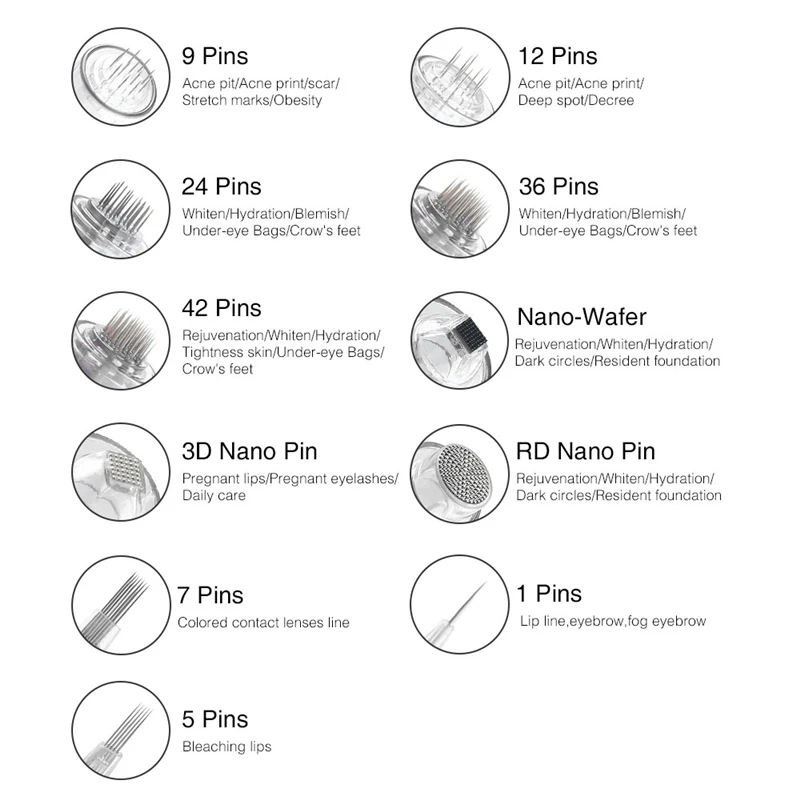 Количество: 10/20/50/100 шт. Картридж: 9 pin / 12 pin / 36 pin /24pin/ 42 pin/ nano иглы... (Подходит только для Dr Pen N2/M5/M7). Тип ручки: байонетный порт. Применение: Просто замените иглу. Длина иглы регулируется по разному размеру в зависимости от областей и целей лечения. Более удобно обрабатывать узкие области, такие как нос, вокруг глаз или рот. Особенности: Это электронная автоматизированная микроигла с направляющими, регулирующими длину игл. Это гигиенично, удобно и безопасно. Перпендикулярное движение наконечника иглы позволяет обрабатывать узкие области и уменьшает боль.