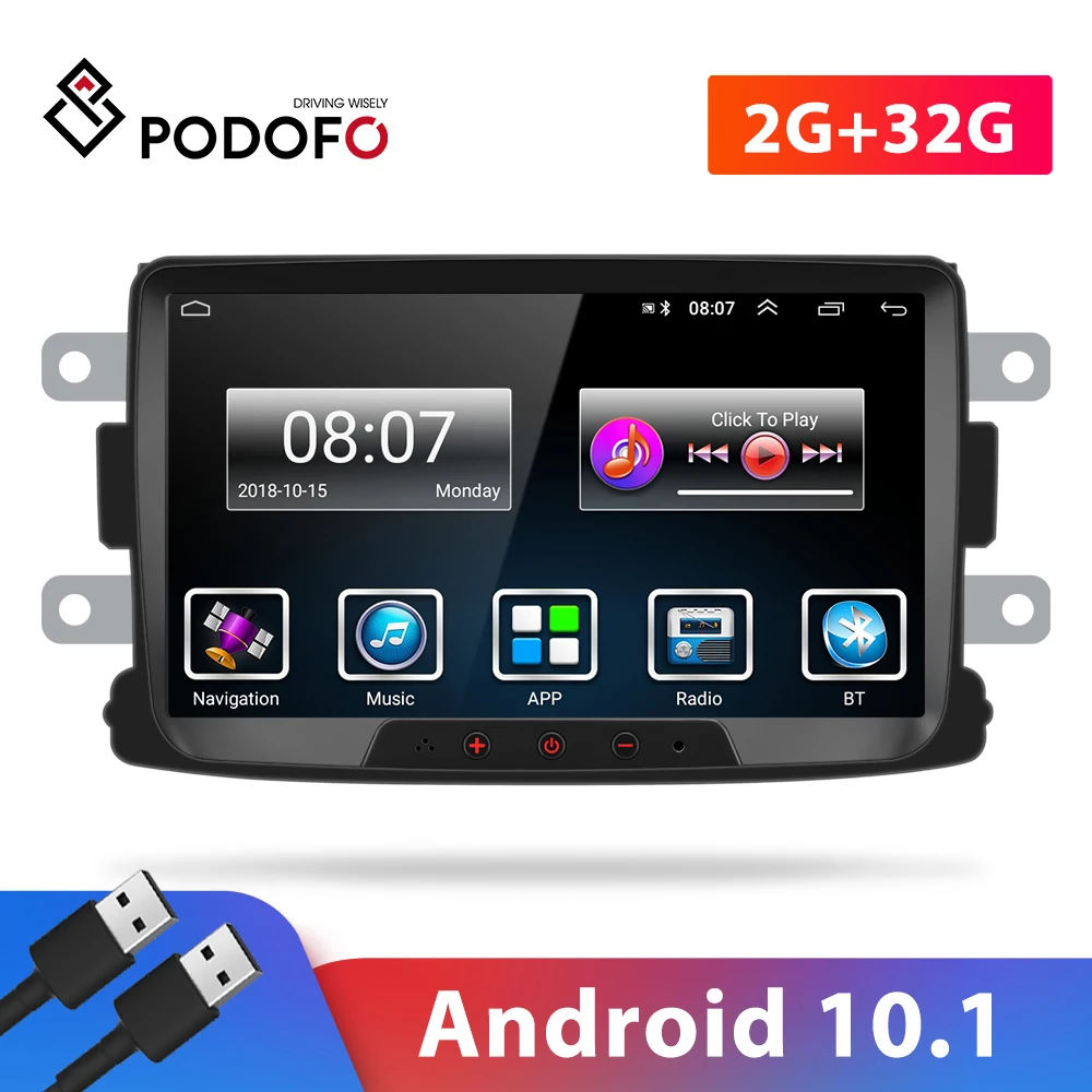 Автомагнитола Podofo, мультимедийный плеер на Android, с 8 "экраном, GPS, Mirrorlink, для Renault DusterLoganDokker, типоразмер 2DIN